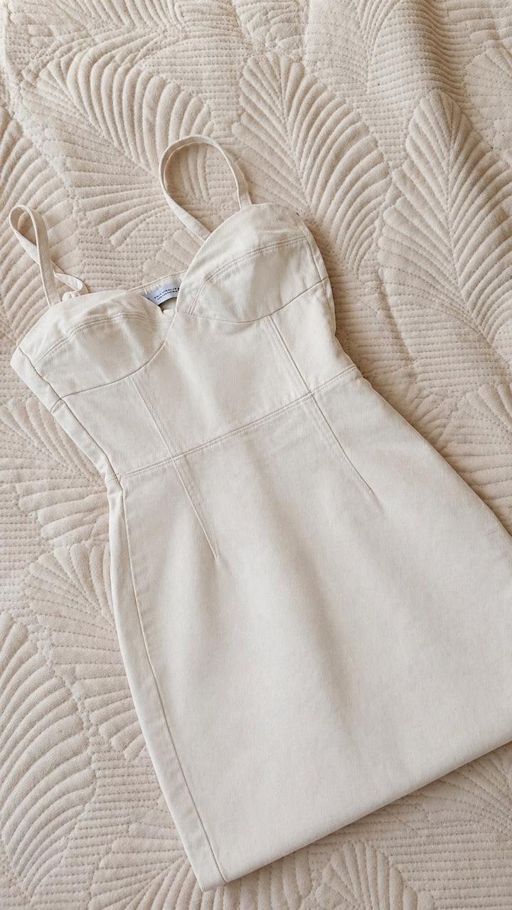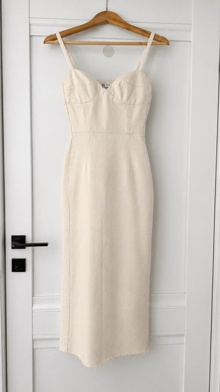 На размер XS, для худеньких и с тонкой талией, так как джинса не тянется. Очень утонченное платье для лета. В хорошем состоянии. Артикул: 595869