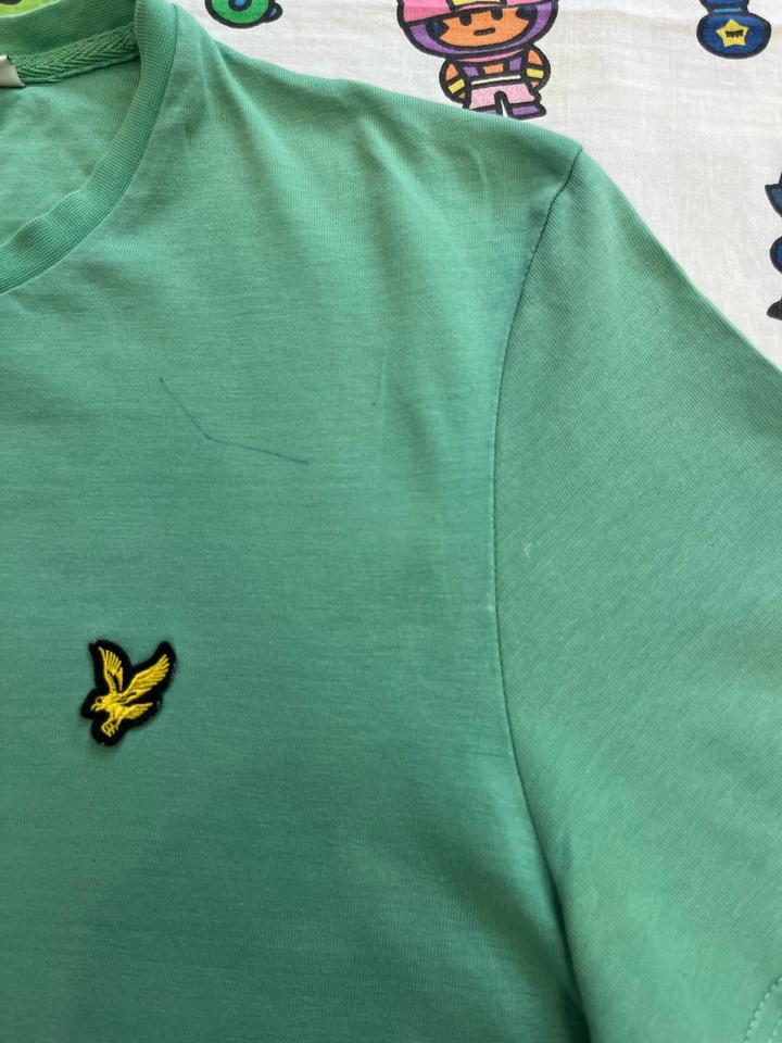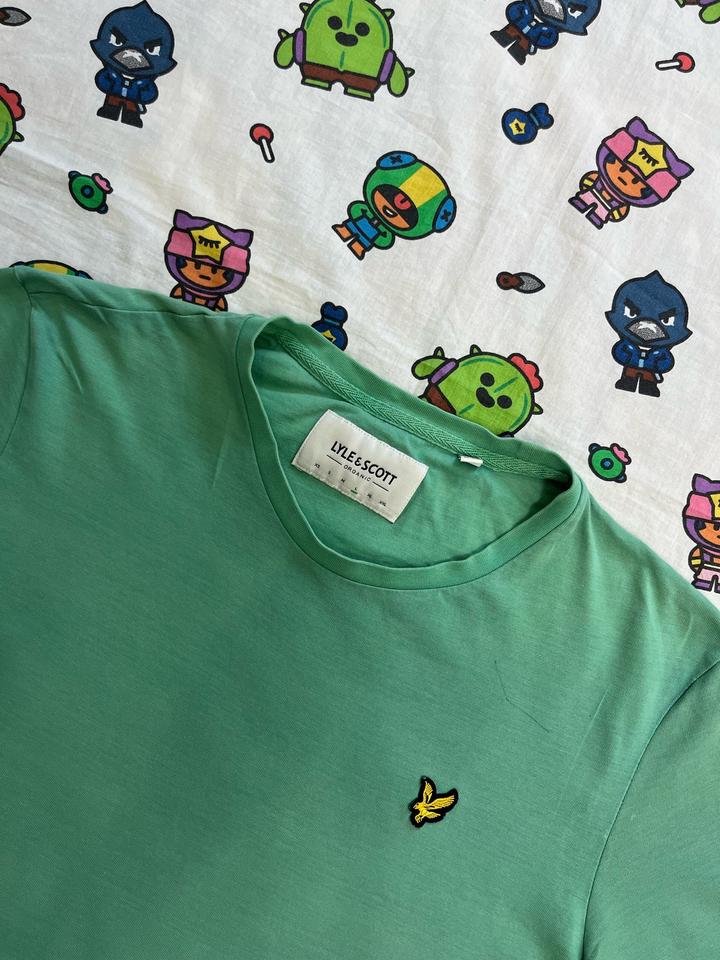 Оригинальная футболка от Lyle & Scott, идеальный фит и качество, один маленький исправимый нюанс спиртом либо же ии в помощь, но убрать можно, личная встреча Уральск, доставка по всему миру Артикул: 595874