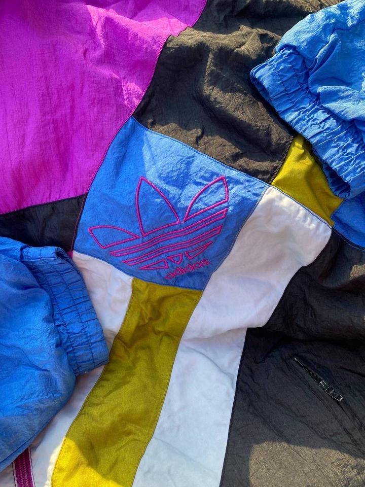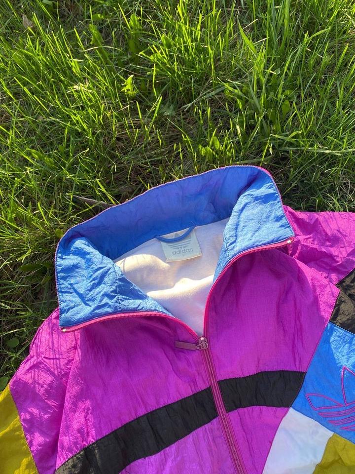 Винтажная ветровка adidas (примерно 2000-е) Яркая олдскульная расцветка: розовый, синий, жёлтый и чёрный — классический ретро-стиль. Лёгкая, нейлоновая, отлично подойдёт на весну/лето или как стильный слой. Размер: L (сидит оверсайз, спокойно подойдёт на XL) Состояние: хорошее винтажное Цена: 30 000 тг Артикул: 595898