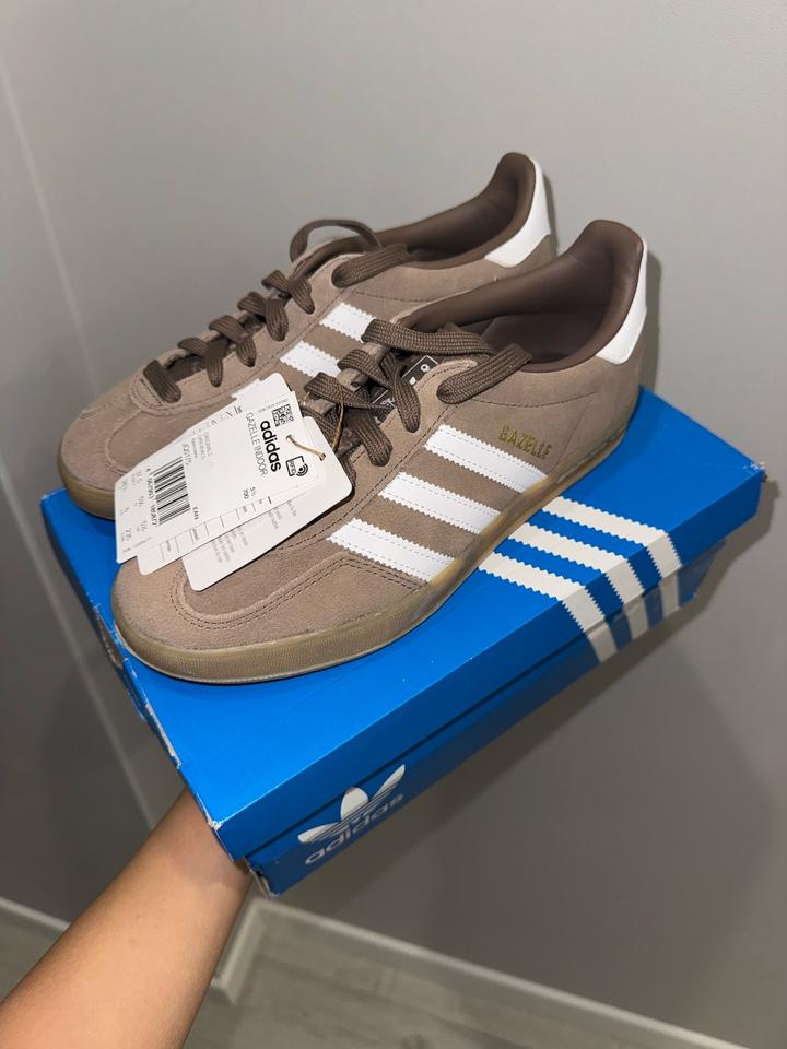Adidas Gazelle Indoor (оригинал) 🤎 Состояние почти новое — носились 1 раз Покупала в Хан Шатыре за 86 000₸, привезены из Астаны. Причина продажи — не подошёл размер(поняла это при носке) ✔ Оригинал ✔ Есть бирка ✔ Запасные шнурки в комплекте ✔ Без коробки, когда перевозили, оставила Стильные, удобные, подойдут на каждый день 👟 Отдаю дешевле, чем покупала Артикул: 595901