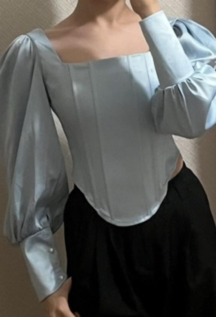 Кофта-корсет голубого цвета Надевала всего 2–3 раза. Сзади корсет регулируется, отлично садится по фигуре На рукаве отсутствует одна пуговица, в остальном состояние очень хорошее. Смотрится красиво, нежно и стильно Артикул: 595921