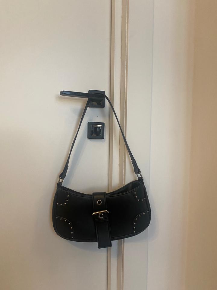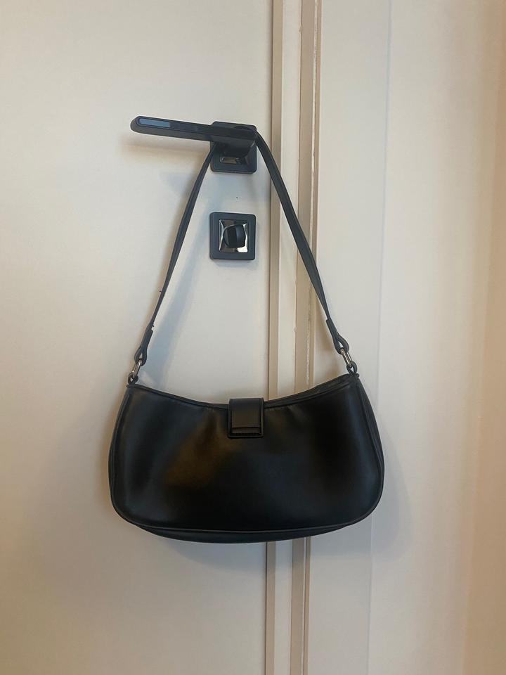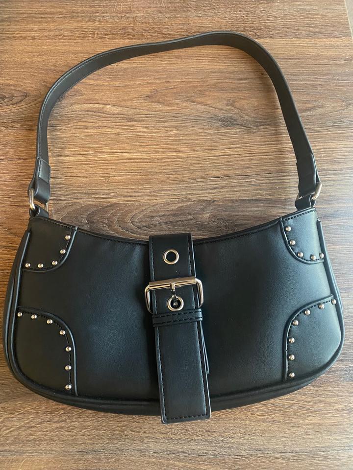 Черная сумка с серебристой фурнитурой в отличном состоянии. Артикул: 595955