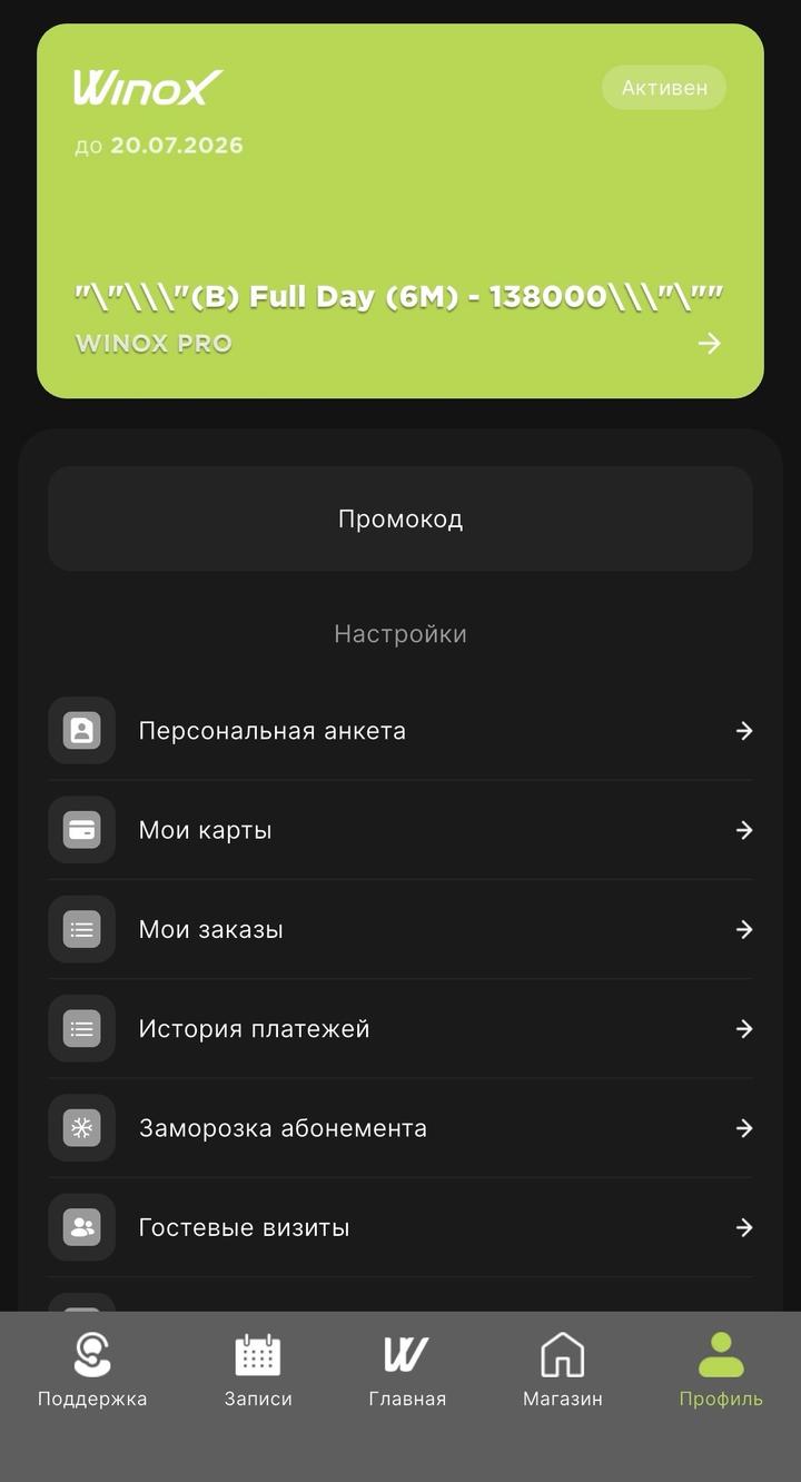 Продам абонемент в фитнес-клуб Winox Pro. Адрес: ТЦ Jurec Tau, проспект Аль-Фараби 5/2 Абонемент действует до 20.07.2026. В стоимость входит 2 гостевых посещений; 1 анализ тела на аппарате Unikum. Без лимитное посещение с 07:00 до 22:30. Можно ходить на групповые занятия и в тренажерный зал. Артикул: 595990