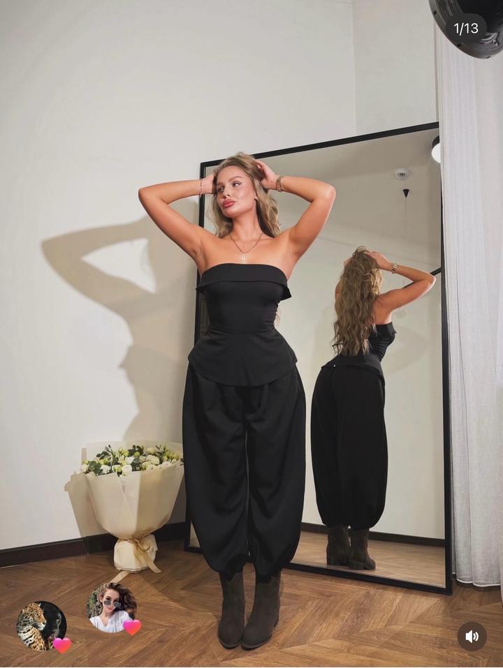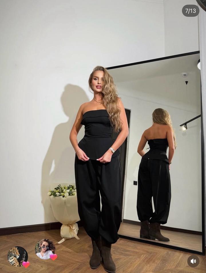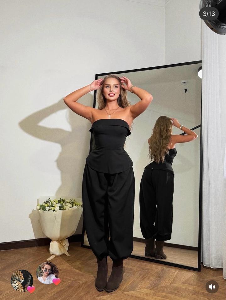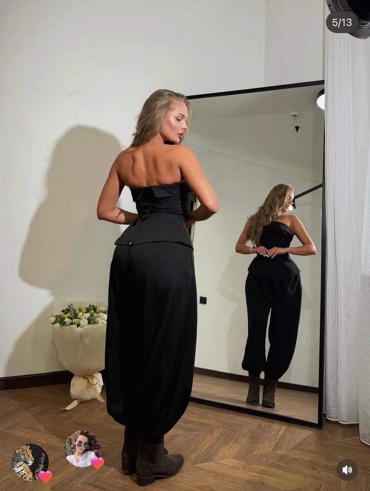 Корсет + брюки алладинки Цвет: чёрный Размер: S (42–44) Корсет сзади на замке и завязках — красиво подчёркивает талию 🤍 Брюки свободного кроя, лёгкие и комфортные в носке. Комплект отлично подойдёт как для выхода с каблуками, так и для повседневных образов 👌 Артикул: 596011