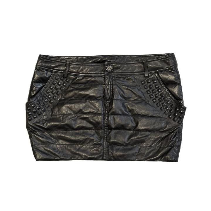 Винтажная юбка из 100% натуральной кожи на низкой посадке с заклепками (M-L) Обхват талии изделия - 84 см Длина юбки - 33 см Подойдет на обхват бедер 96-98 см Артикул: 596106