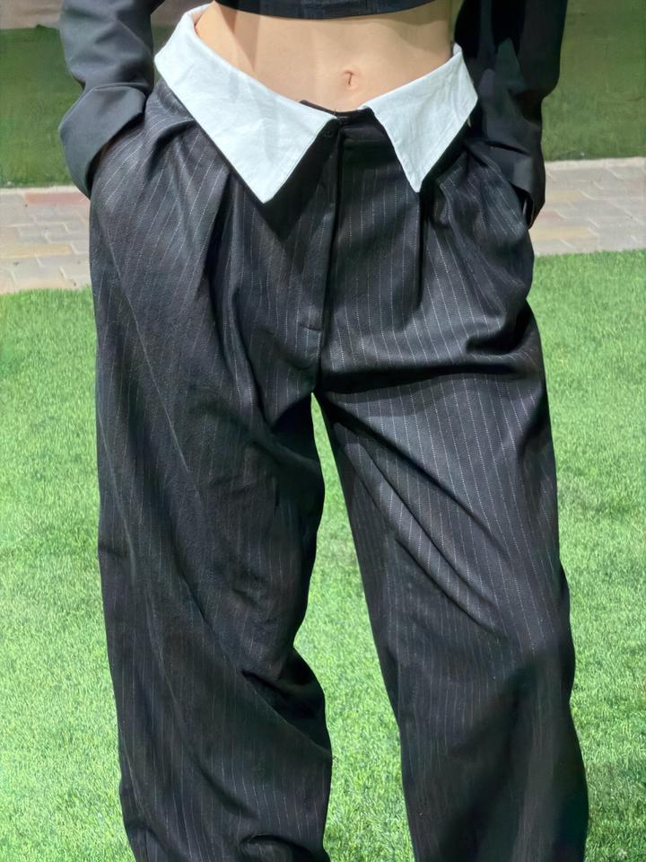 Классические брюки,с белую полоску,сверху на брюках есть белый воротник Артикул: 596107