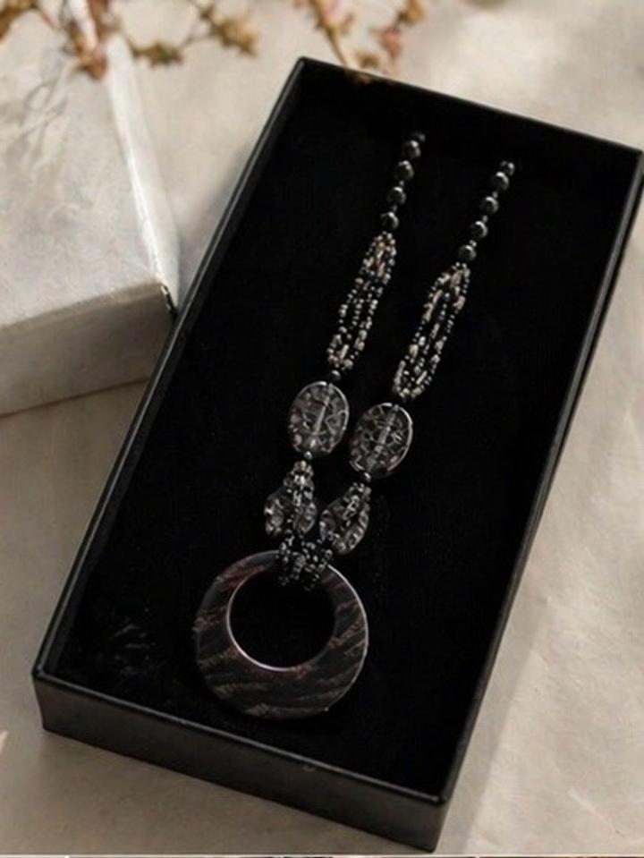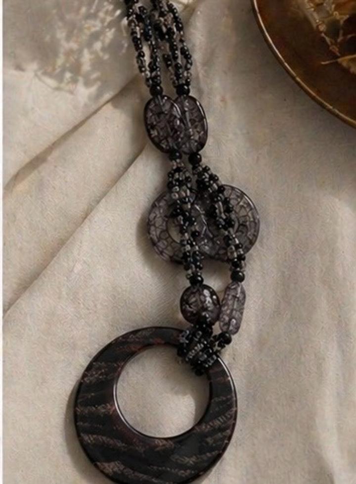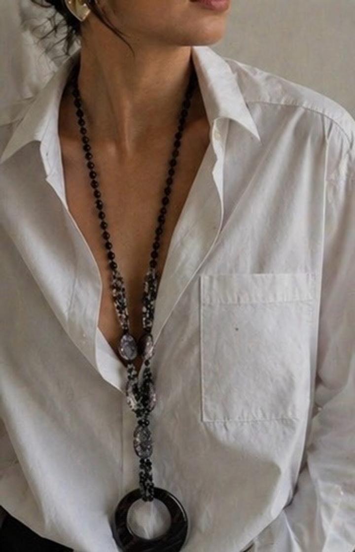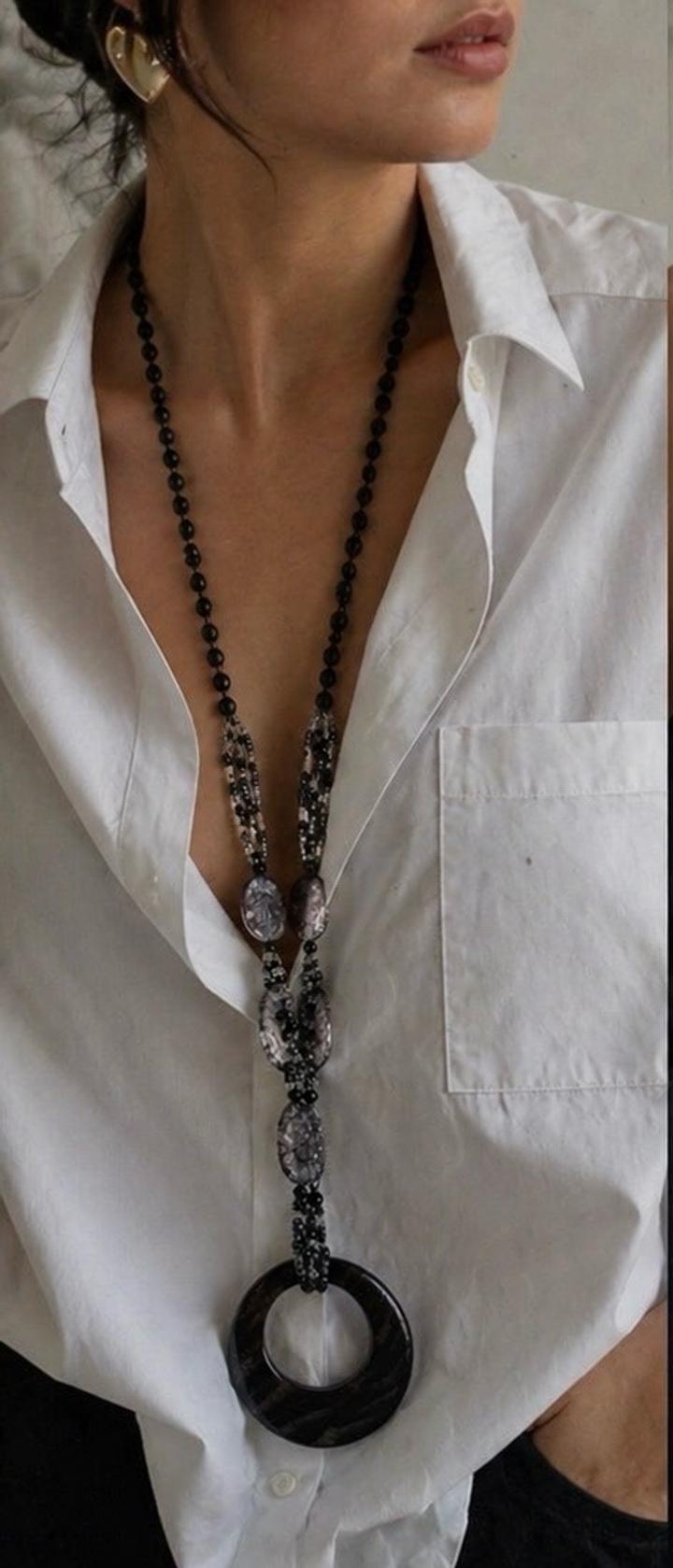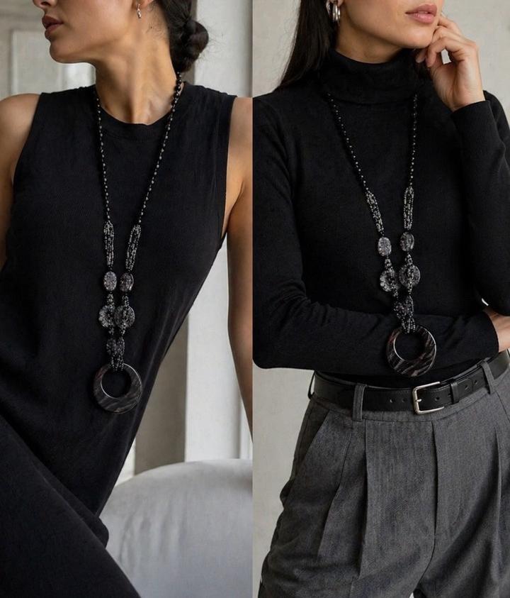 Эффектное длинное колье в чёрно-графитовой гамме — идеальный акцент для стильного и дорогого образа. Главная деталь — выразительный подвес-кольцо с благородным переливом, который сразу притягивает внимание и делает образ завершённым. Почему стоит купить: Украшение, которое не требует дополнений — надели и уже выглядите стильно и дорого Артикул: 596194