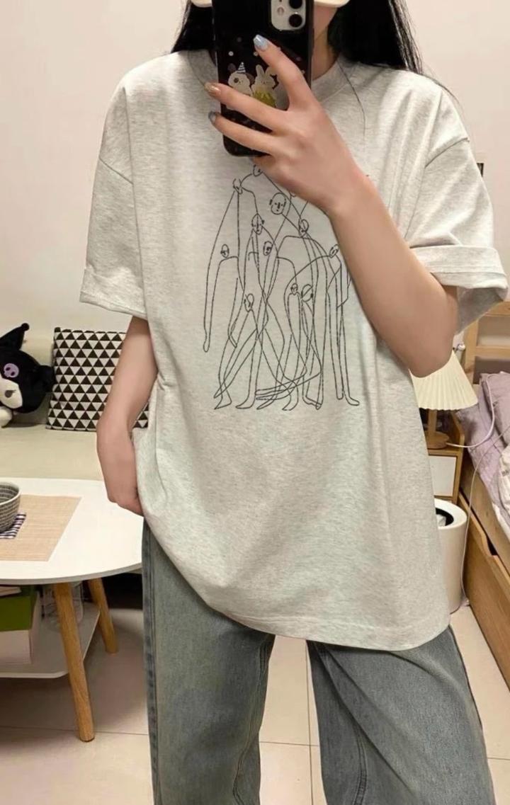 Интересная футболка в бежевом цвете оверсайз Артикул: 596214