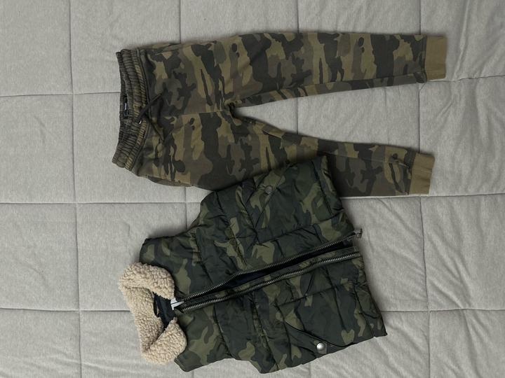 В идеальном состоянии жилет, никаких потереостец на фурнитуре и пр. Штанишки в выбеленном стиле. Очень стильный комплект милитари. Отдам за 10000тг чистыми. Артикул: 596344