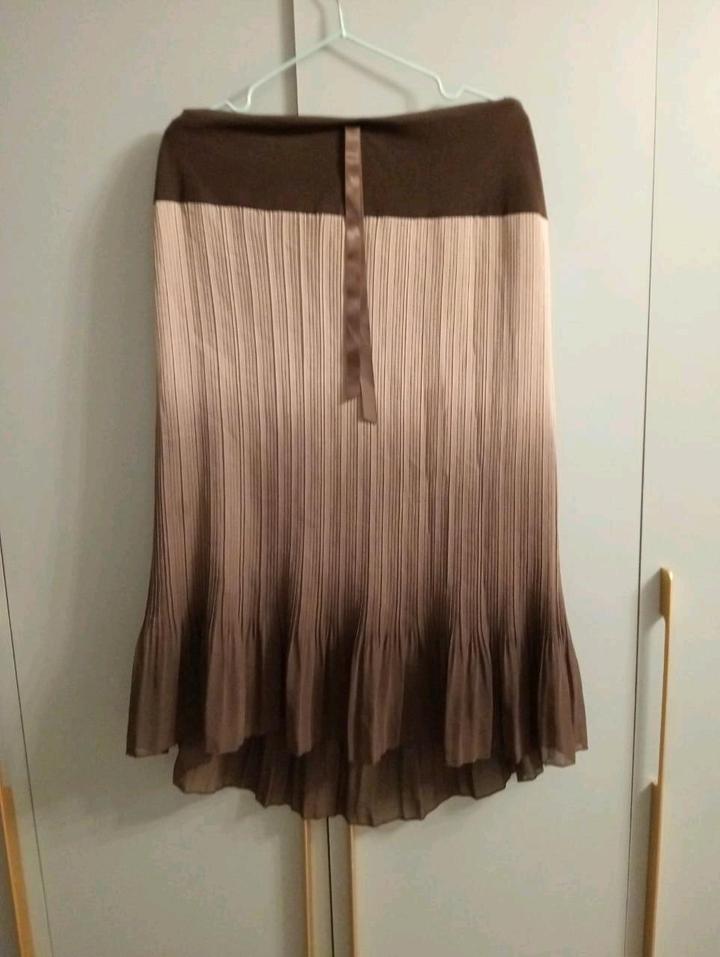 Юбка-плиссе, размер 3XL(48-50). Производство Корея. Состав: 60% вискоза, 40% полиэстер. Красивый коричнево-бежевый оттенок, лёгкая струящаяся ткань, плиссировка. Удобная посадка, отлично смотрится на фигуре. Подойдёт для офиса, прогулок и нарядного образа. Состояние отличное. Артикул: 596352