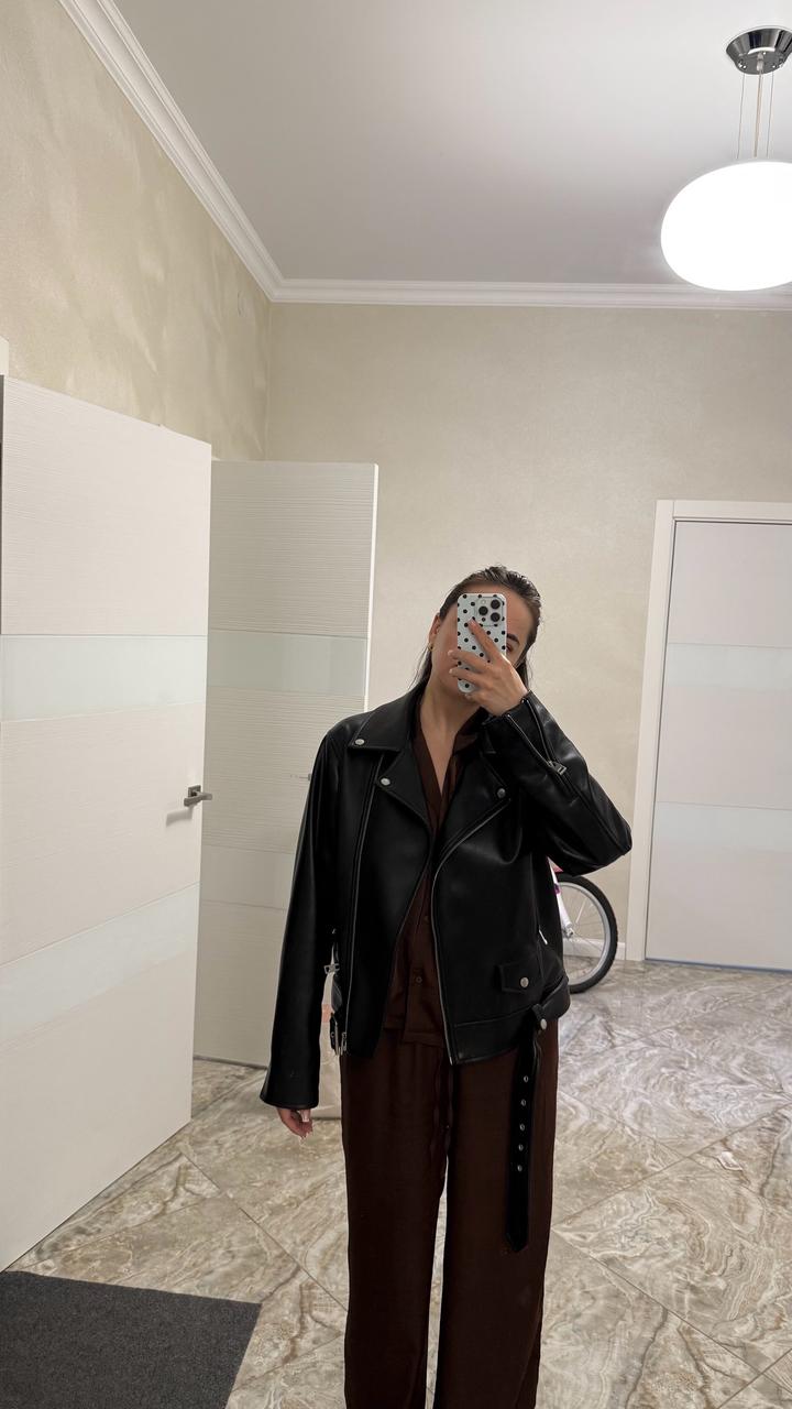 Черная косуха уже классика, нужна в любом гардеробе, в отличном состоянии, экокожа качественная не хуже натуральной, размер указан S, я ношу L и мне нормально в ней тоже Артикул: 596387
