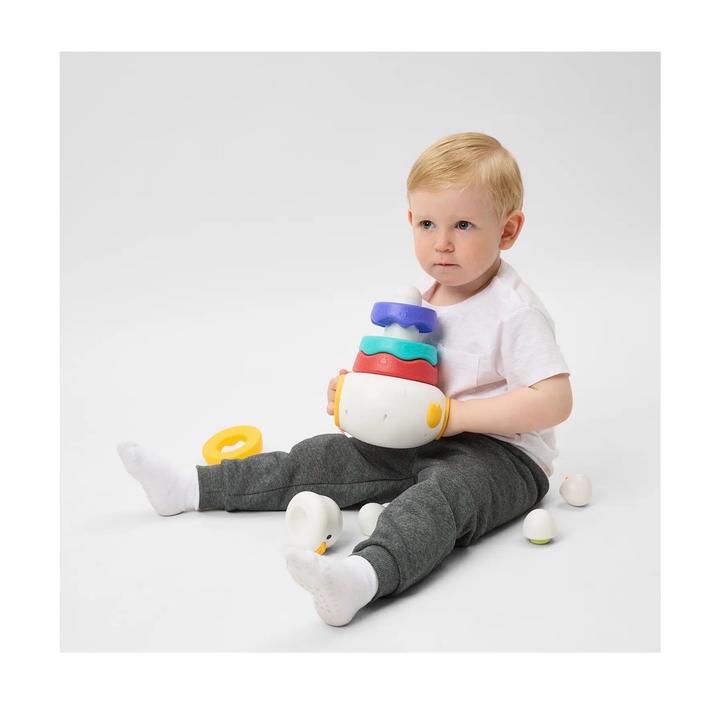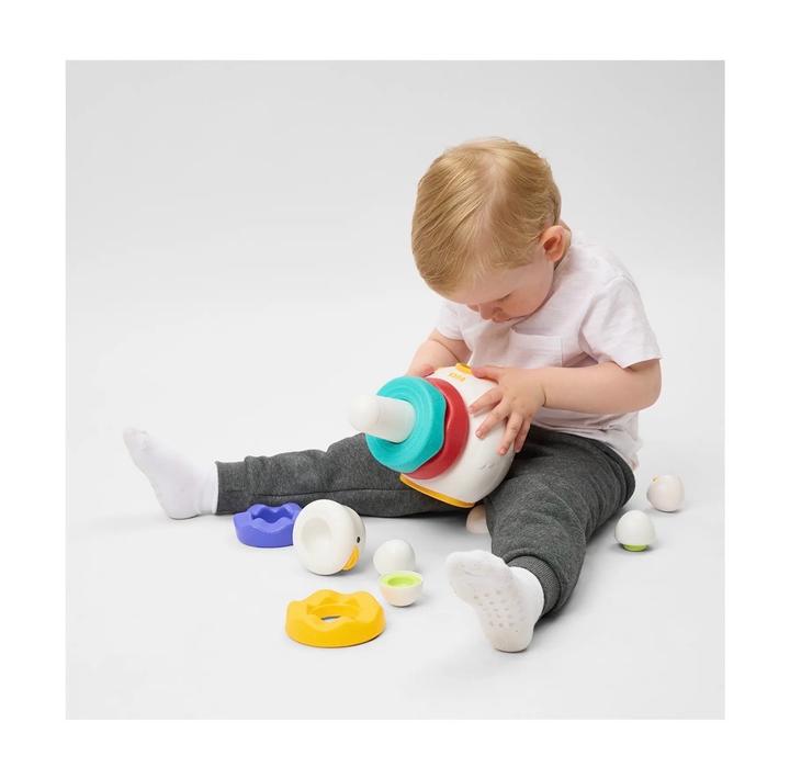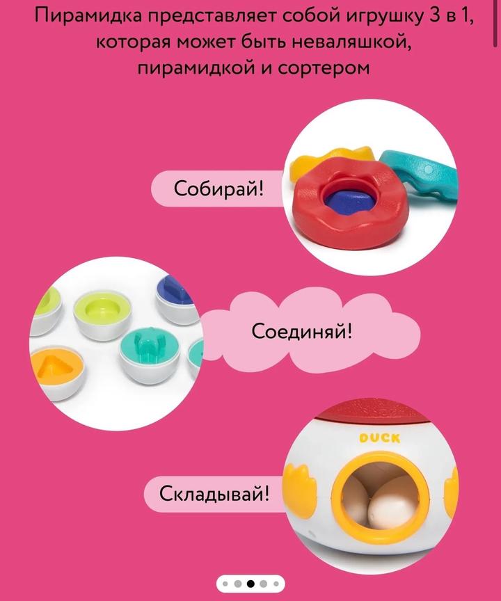 Игрушка новая в коробке! Развивающая игрушка «Уточка» очень полезна для развития малышей. Игрушка 3 в 1, которая может быть неваляшкой, пирамидкой и сортером. В наборе идут 5 яиц натуральной величины, которые удобно размещаются внутри «Уточки». Особенность этой игрушки заключается в том, что все яйца хранятся внутри неё, что обеспечивает порядок и безопасность. Уточка помогает развивать мелкую моторику, координацию и логическое мышление ребёнка. Артикул: 596415