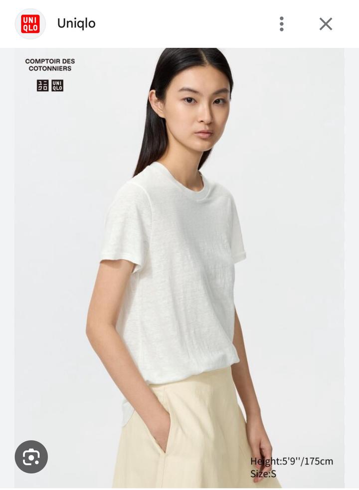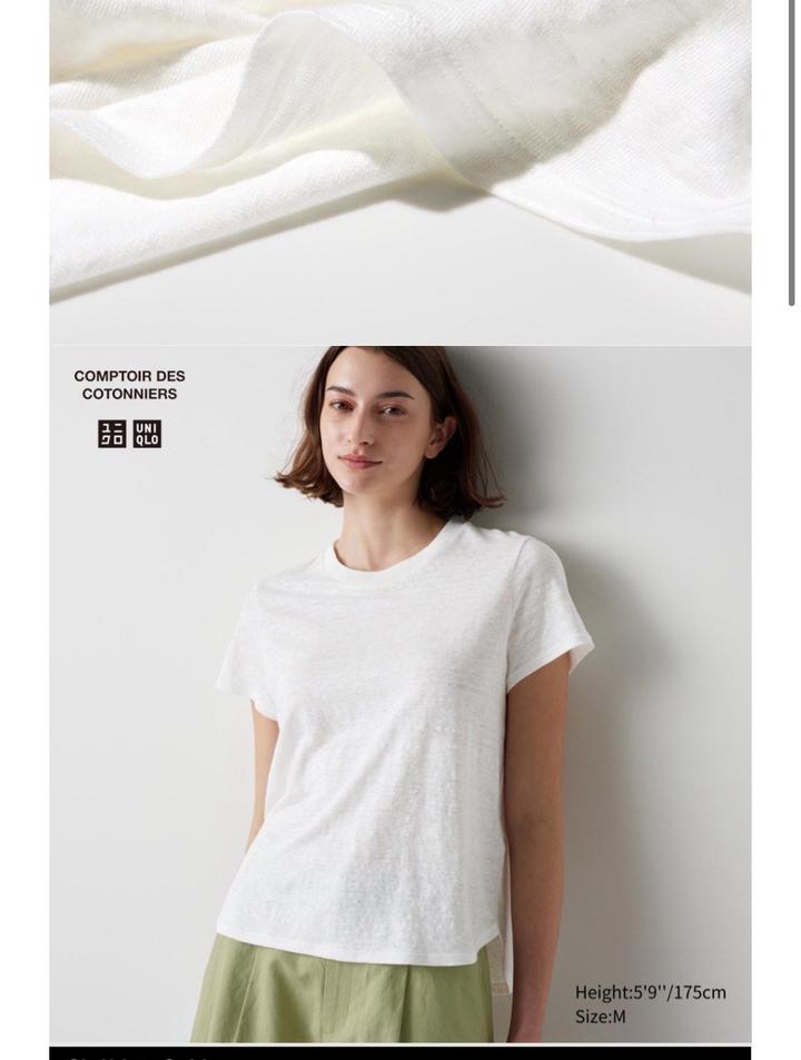 продаю футболку от бренда Uniqlo привезли из Японии размер не подошел абсолютно новая с биркой 100% натуральный ЛЕН линейка выше базы французская - Comptoir des cottoniers размер L японский т е на М пойдет либо обменяю на белую футболку приталеную от uniqlo Артикул: 596467