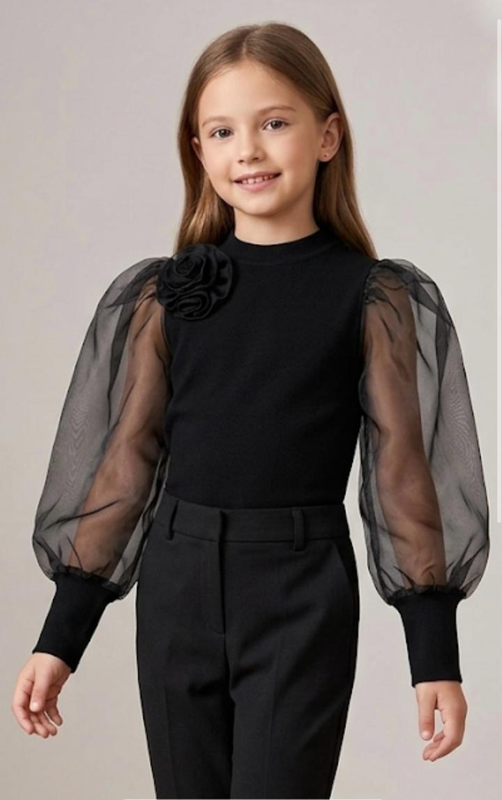 Новая блузка для девочки. Фатиновые рукава. Цена 6000. Длина блузки 46 см, длина рукава 53 см. Артикул: 596471