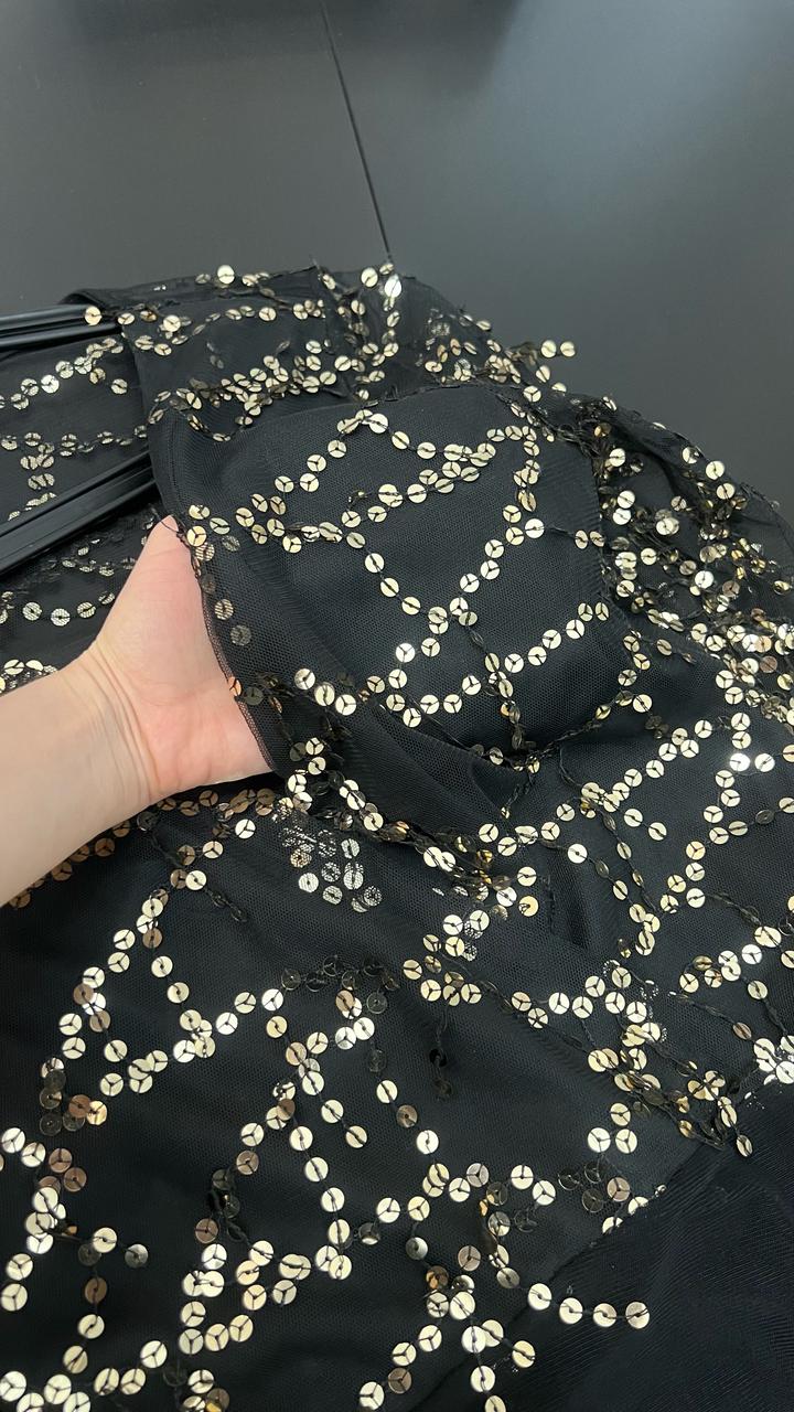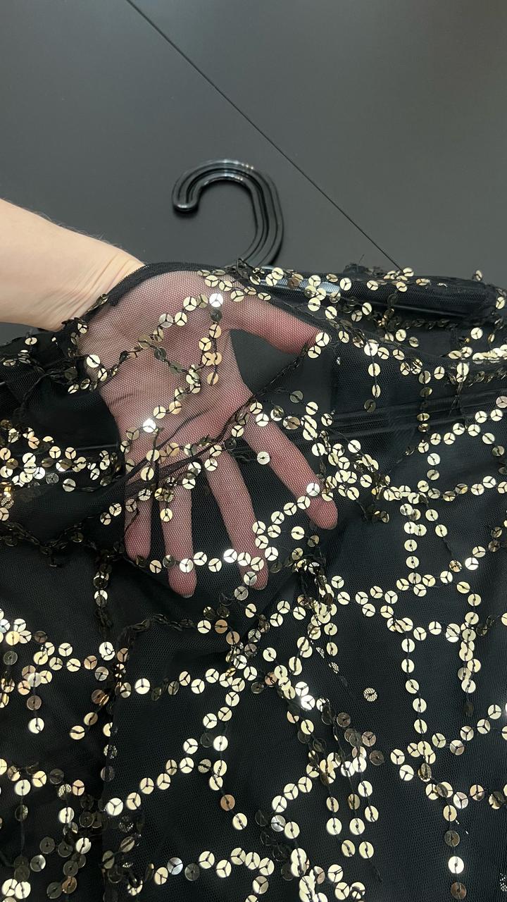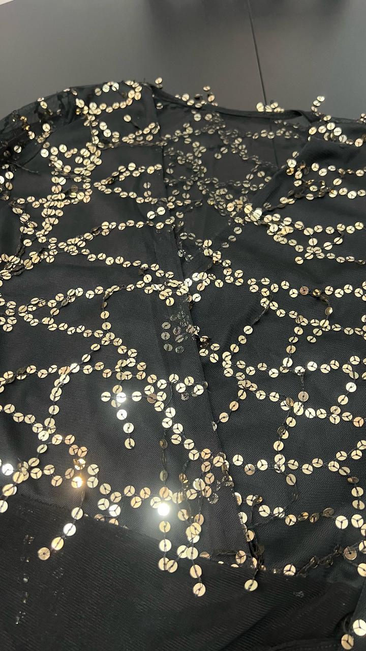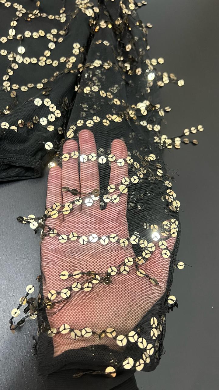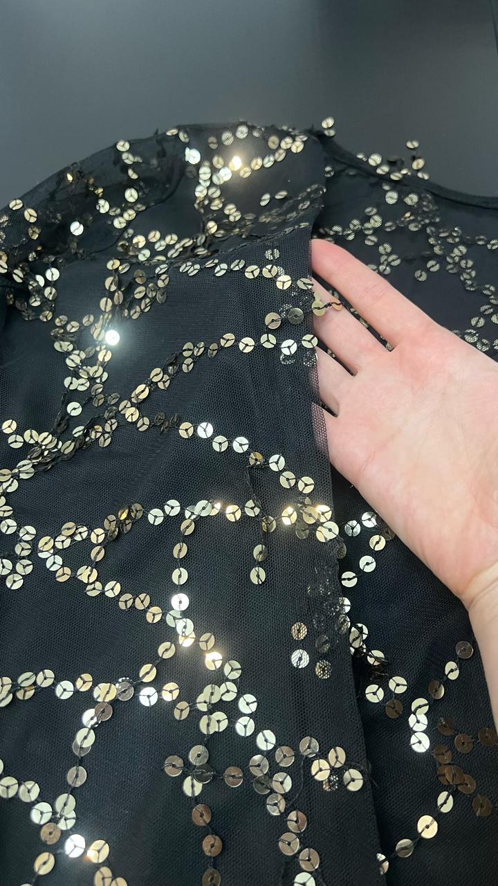 Шикарный черный Боди с золотистыми пайетками, вырез - на запах, спинка и рукава сеточка. Артикул: 596501