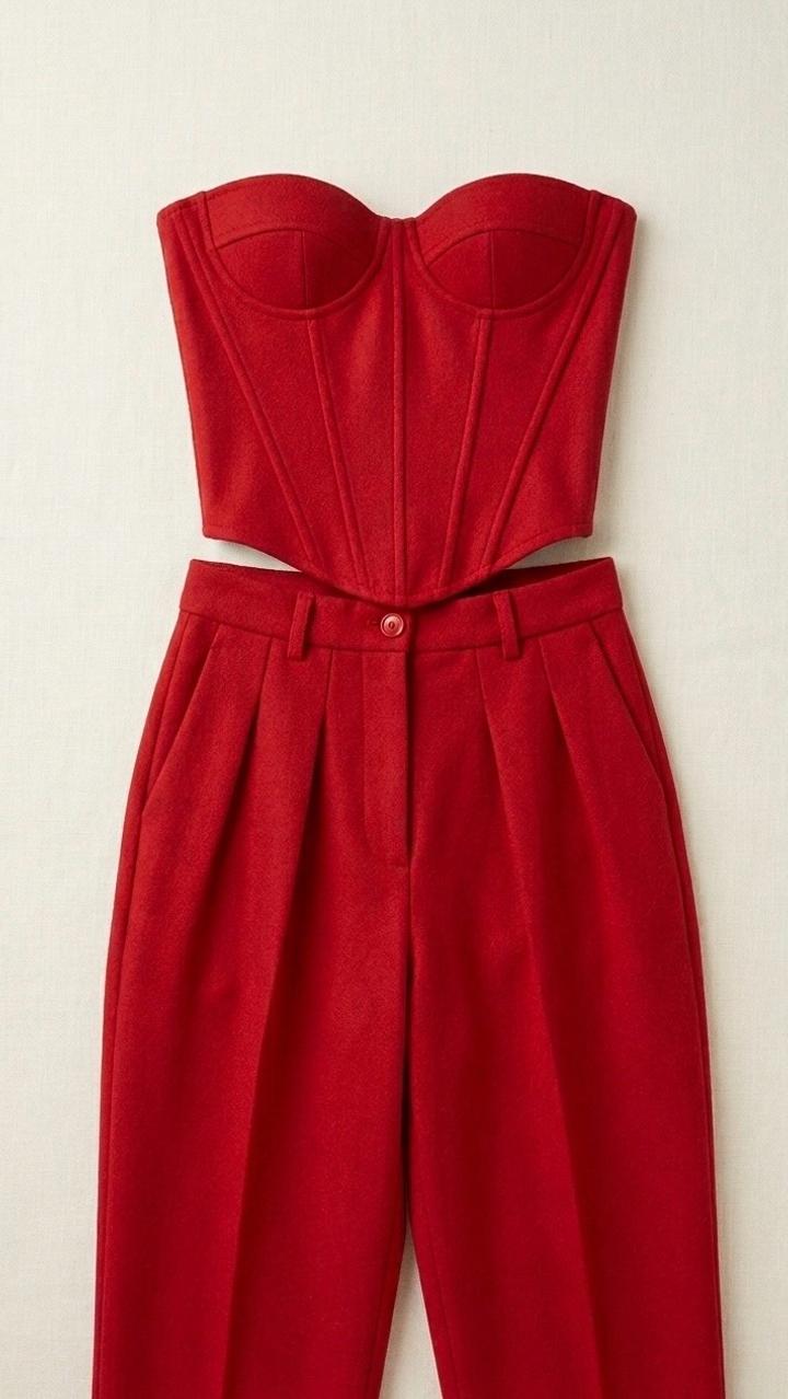 Разгрузка с магазина !!! Красный брючный костюм с корсетом 🔴 Пошив: отличного качества 👍🏻 Состояние:новое Размер:стандарт s Ткань:смешанная Подойдет для весенней погоды ,более утепленная Артикул: 596523