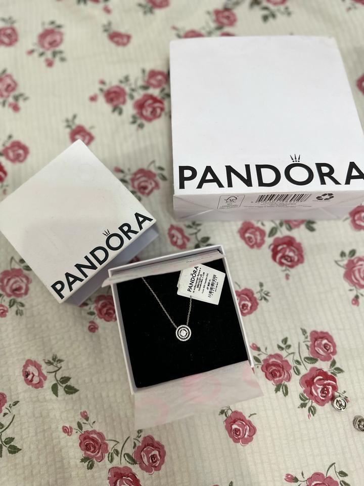 Оригинальное ожерелье Pandora из коллекции Timeless с круглым кулоном в стиле halo (ореол). *фирменная коробка Pandora * бирка (оригинал) Состояние: отличное / почти не носилось Артикул: 596570