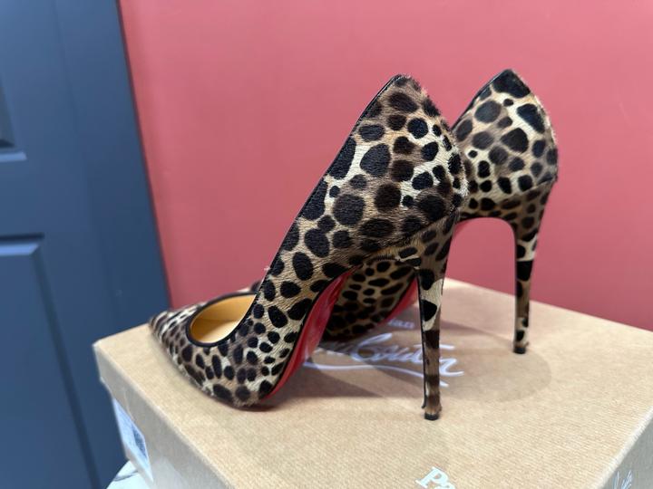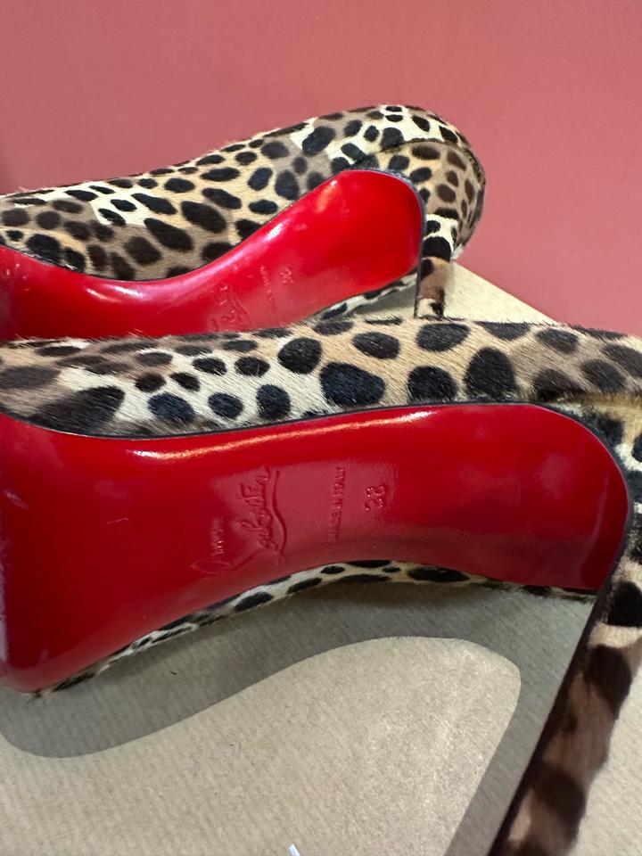 Классические лодочки Christian Louboutin с леопардовым принтом из меха пони и фирменной красной подошвой. Артикул: 596571