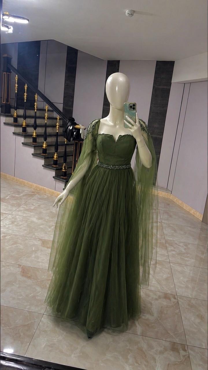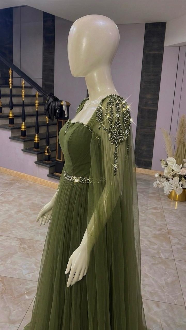 Платье цвета Хаки Изумруд Роскошное платье на вечер Заставляет не отрывая глаз смотреть Вышивка камней ручная работа Состояние отличное Артикул: 596578