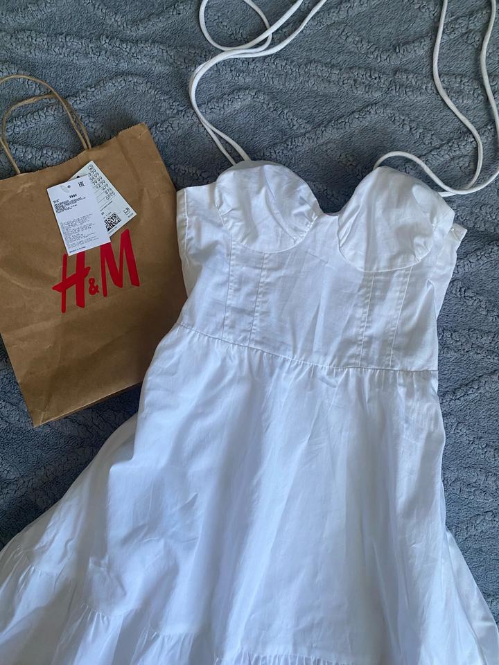 летнее легкое белое платье, не длинное, новое с бирками с H&M. Размер: xxs С боку есть замочек, сзади тянется Артикул: 596607