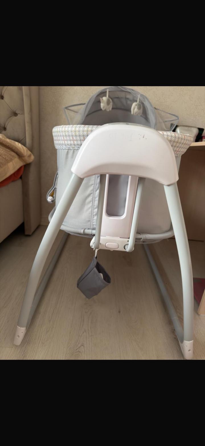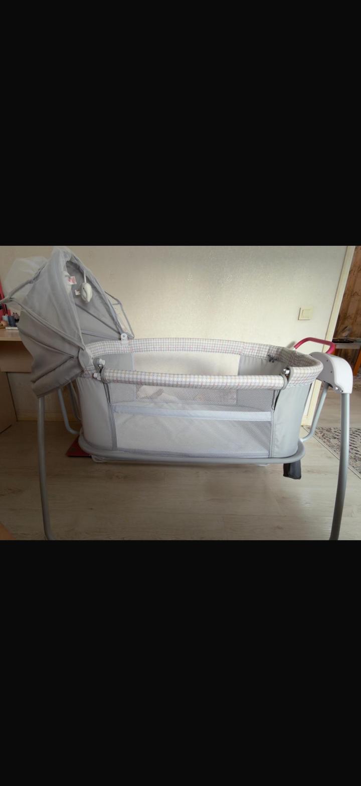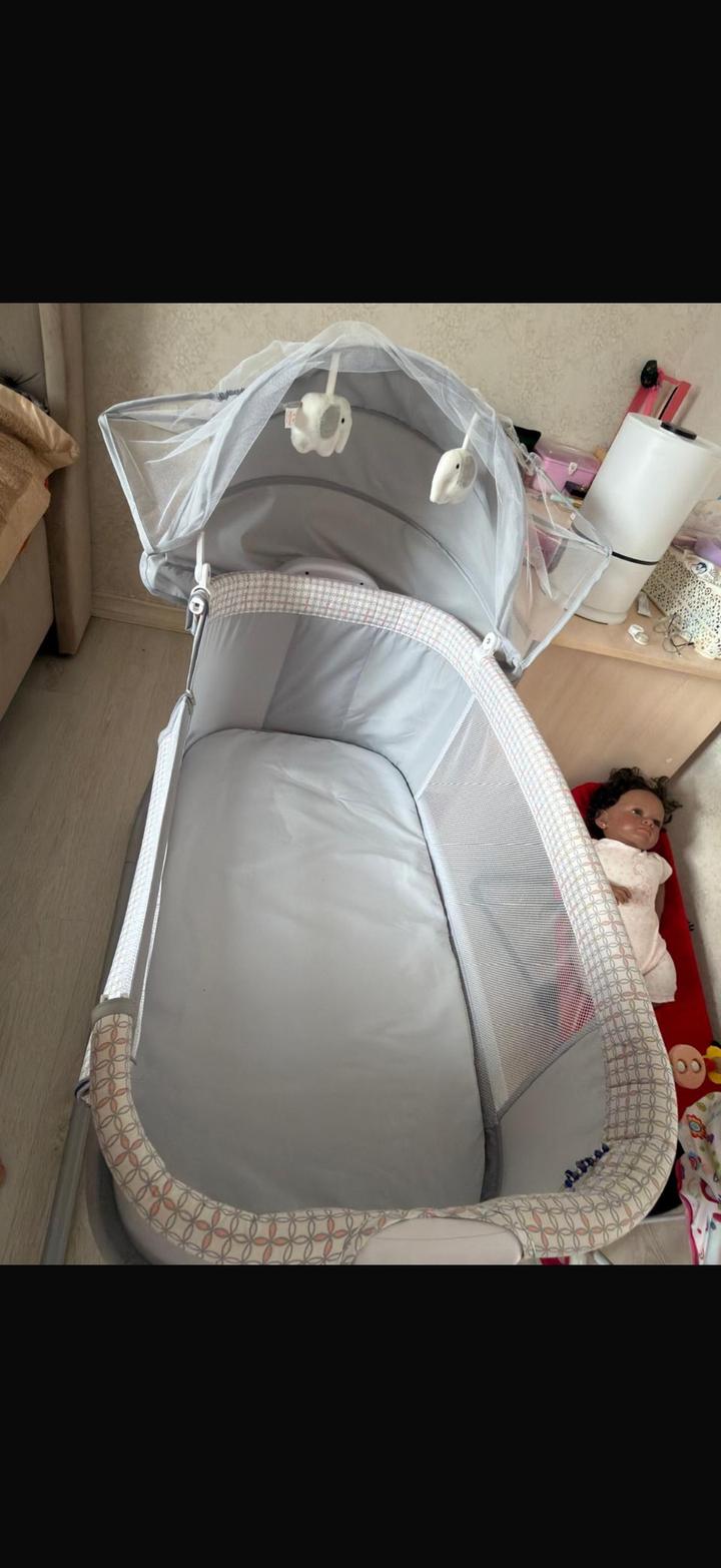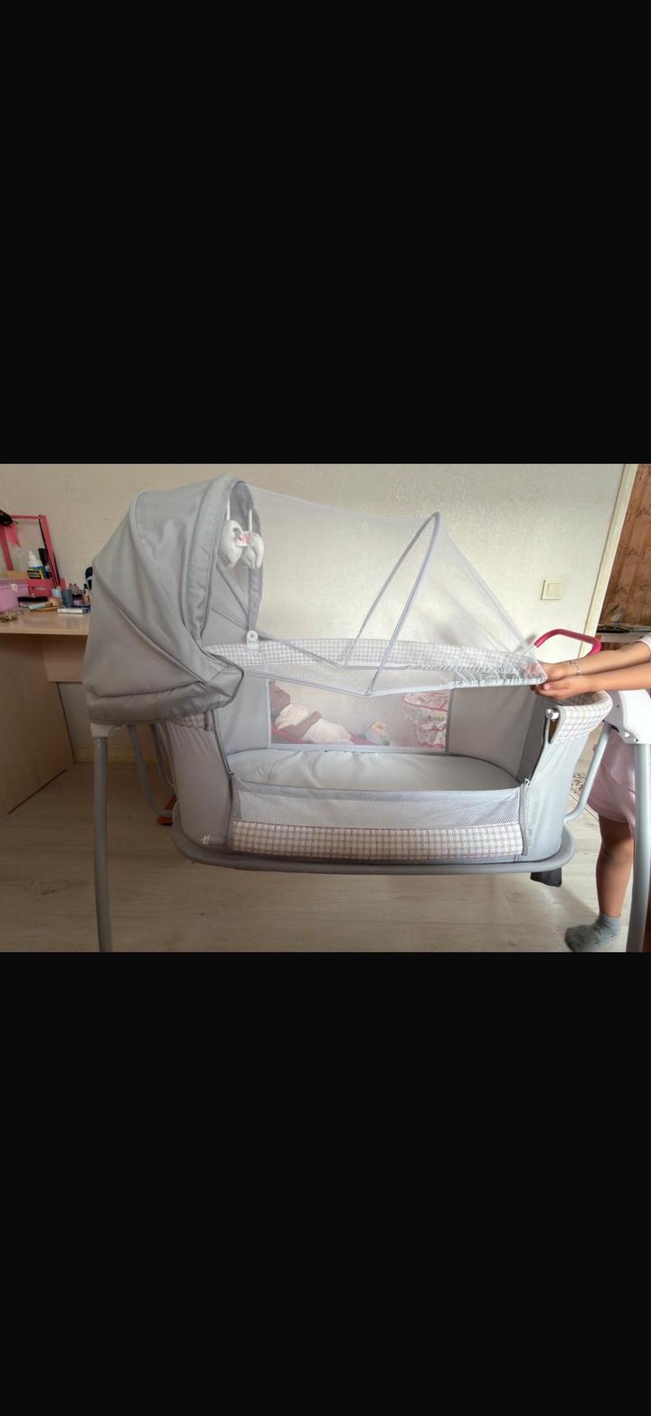 Детская люлька Манежка. Малышка спала до 40 дней,дальше к сожалению она нам не пригодилась. Имеется пульт работает функция качания ,есть песни колыбельные ,подсветка. Регулируется высота Артикул: 596788