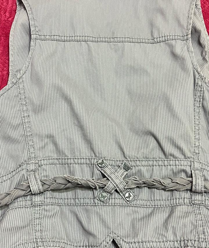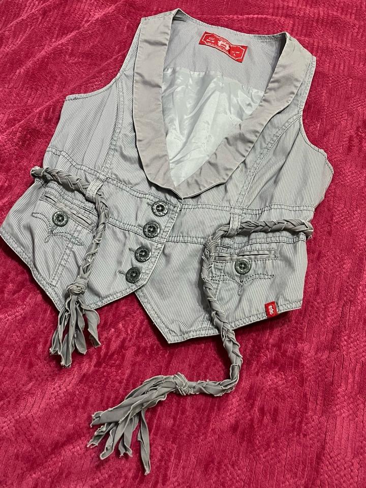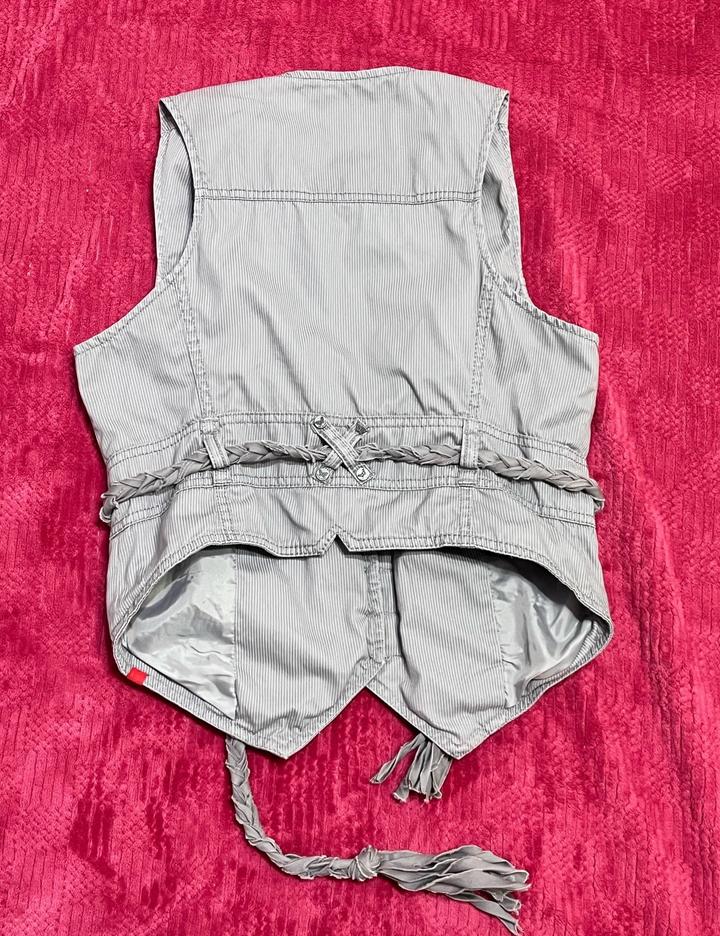 Регулируемая жилетка с акцентной посадкой 🩶 Необычная жилетка с глубоким вырезом и декоративными завязками по бокам, которые позволяют подстроить посадку под себя. Интересные детали и лёгкий корсетный вайб красиво подчёркивают талию и делают образ более собранным и стильным Бренд: edc by Esprit🇺🇸 Размер: указан L, по факту подойдёт на M–L Состав: 100% хлопок, подклад 100% полиэстер Состояние: хорошее, дефектов нет Параметры модели: грудь — 83 см талия — 73 см Артикул: 596801
