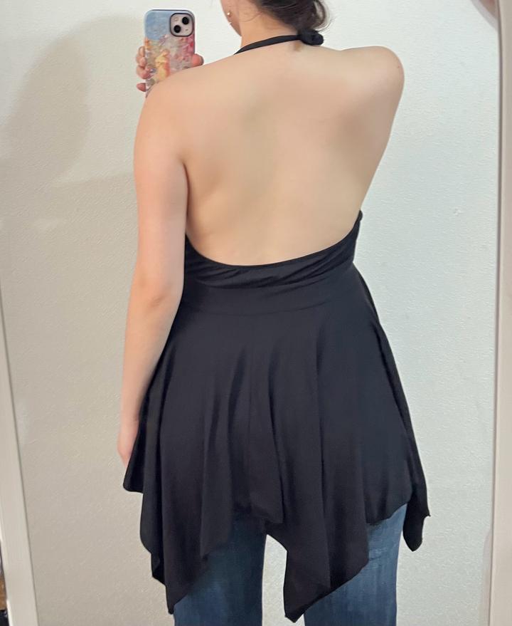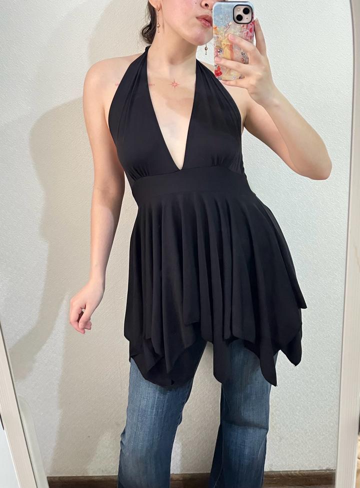 Винтажное платье на завязках с открытой спинкой Эффектное платье с глубоким V-вырезом и открытой спиной, которое красиво подчёркивает зону декольте и талию. Лёгкая струящаяся ткань и асимметричный подол создают плавное движение и добавляют образу воздушности и женственности Бренд: Sheri V. U.S.A Размер: M–L Состав: не указан (по ощущениям хлопок + полиэстер) Состояние: 10/10, без дефектов Параметры модели: грудь — 83 см талия — 73 см бёдра — 101 см рост — 165 см Артикул: 596807
