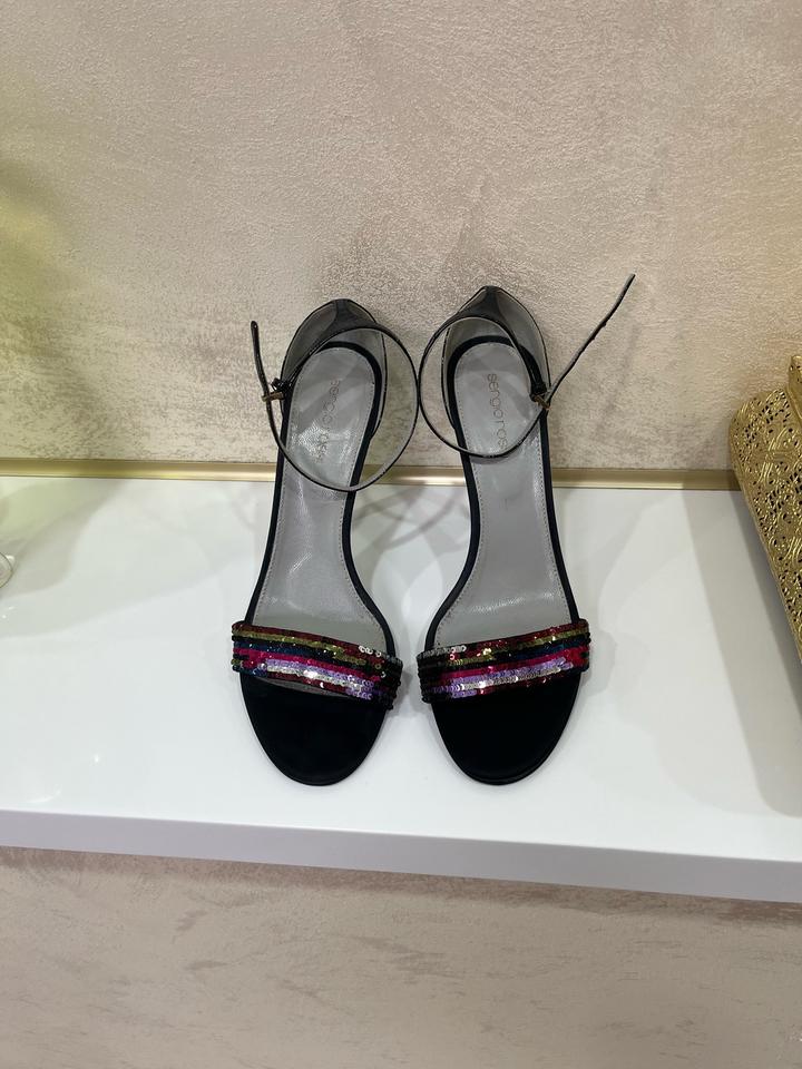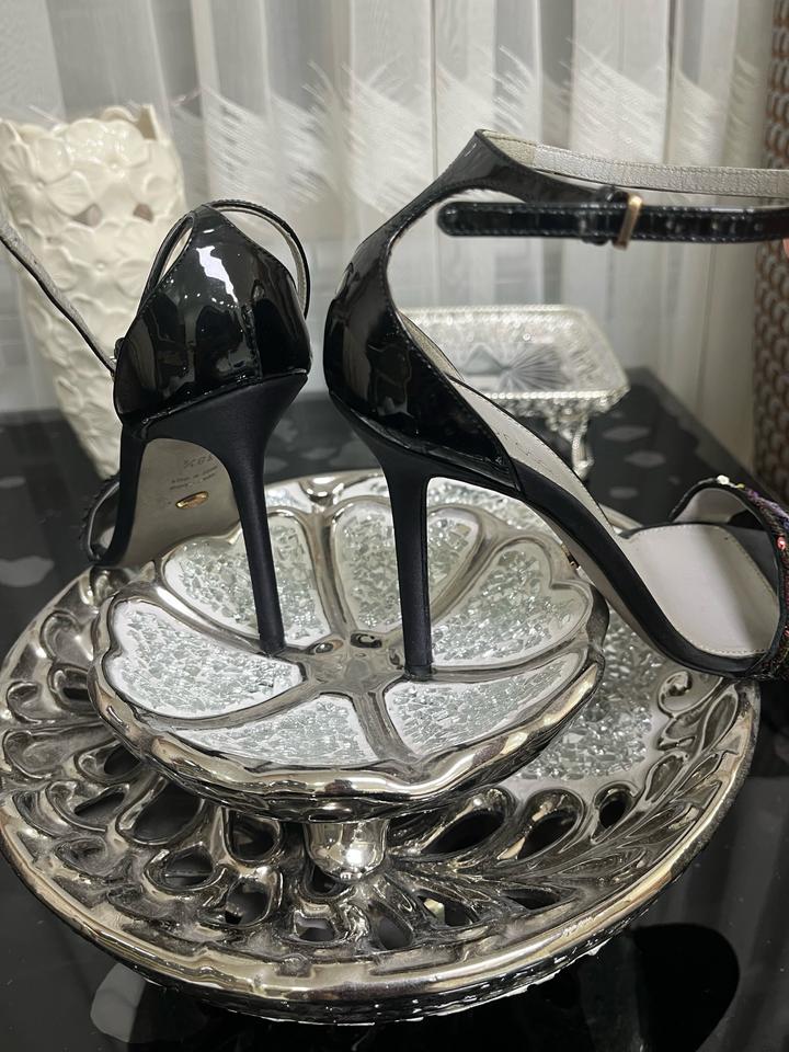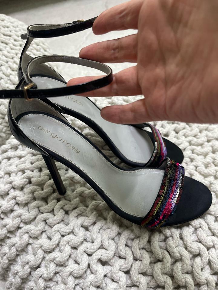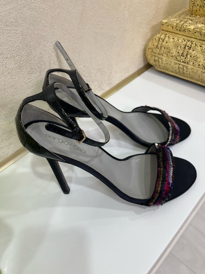 Черные босоножки лаковые с паетками от SERGIO ROSSI Носились мало Несколько выходов без нюансов Артикул: 596815