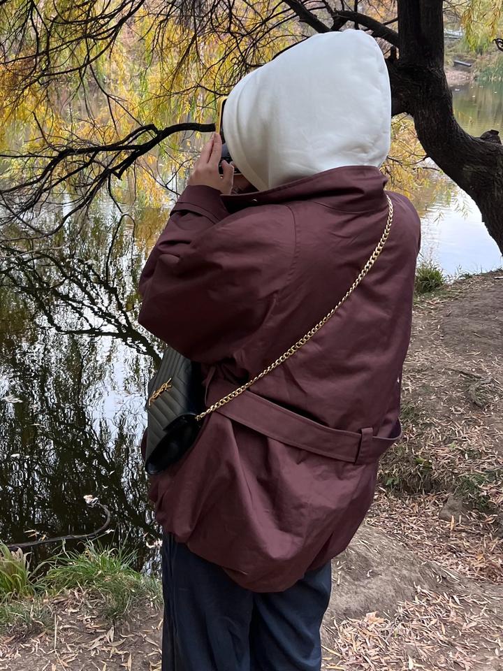 Бордовый оттенок, очень красивый, на весну/осень, низ как тюльпанчик, свободный, стойка воротник, покупался за дорого. Свободный крой подойдет на S и М Артикул: 596830