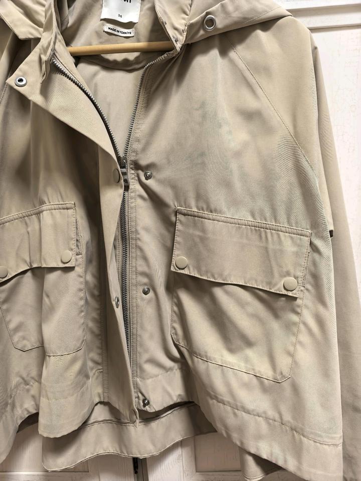 Легкая курточка без подклада на прохладные вечера, носилась недолго, после химчистки. Очень красивый бежевый цвет, модный фасон свободного кроя. Подойдёт от S до L. Артикул: 596890