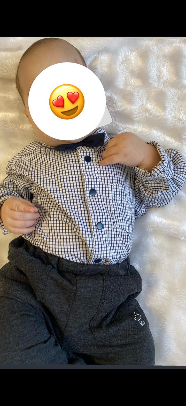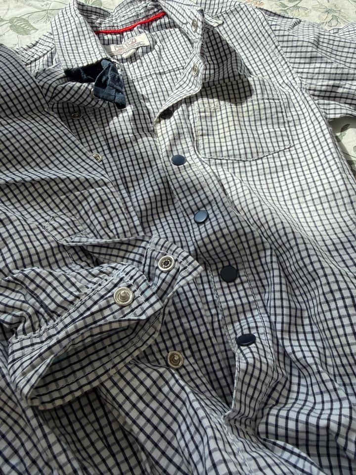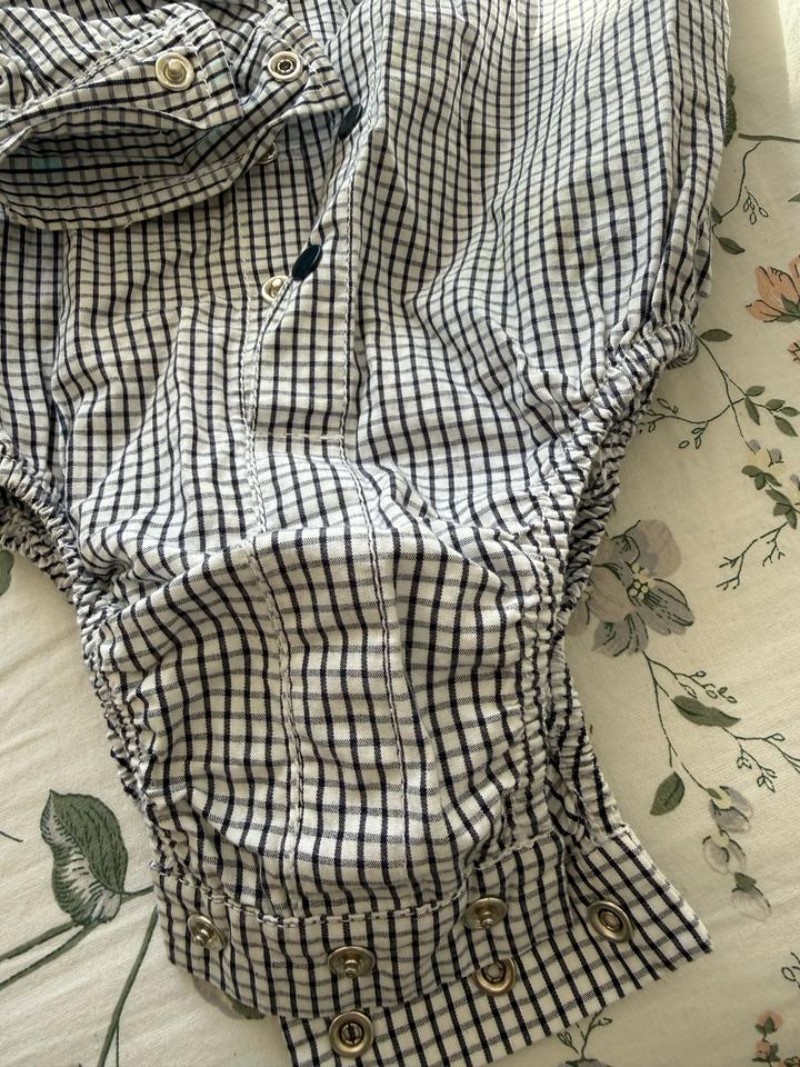 Корейский бренд, 86 размер, (примерно на возраст 1–1,5 года), но мы и от 7-8 мес носили, т к снизу как боди, что очень удобно , что ничего не вылазиет из брюк, в классическую мелкую сине-белую клетку, бабочка сьемная на пуговичках, кнопки по всей длине , очень удобная вещь и очень нарядная, мы одевали на мероприятие Артикул: 596998