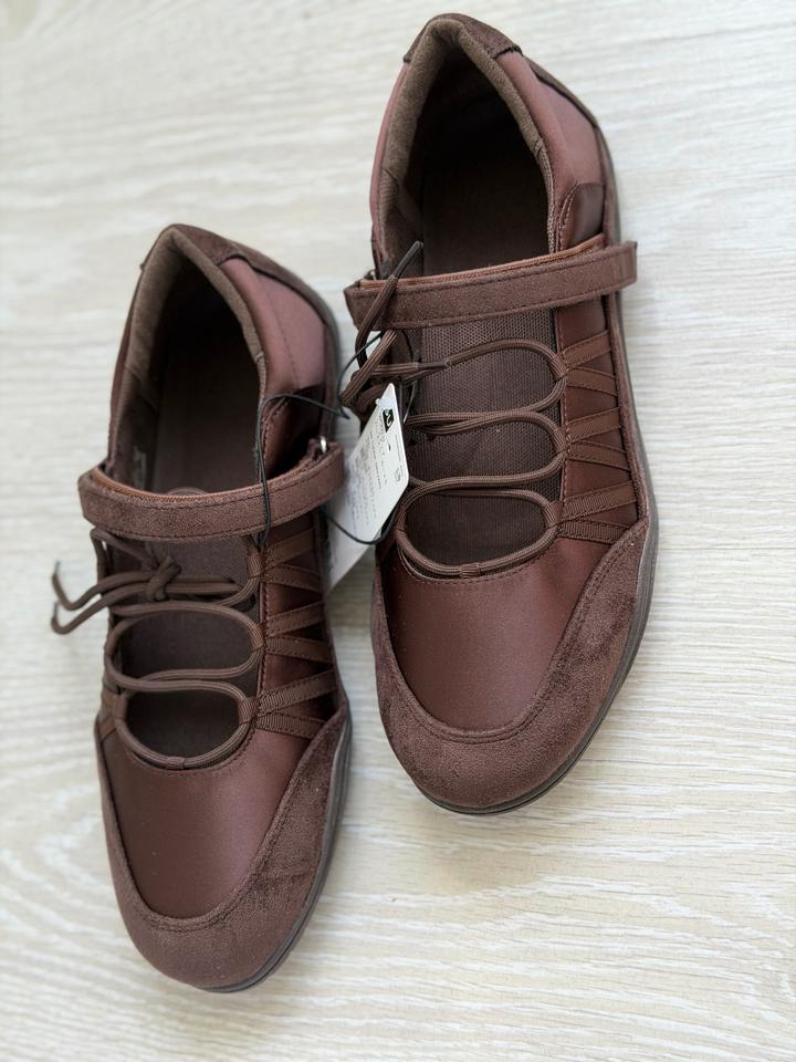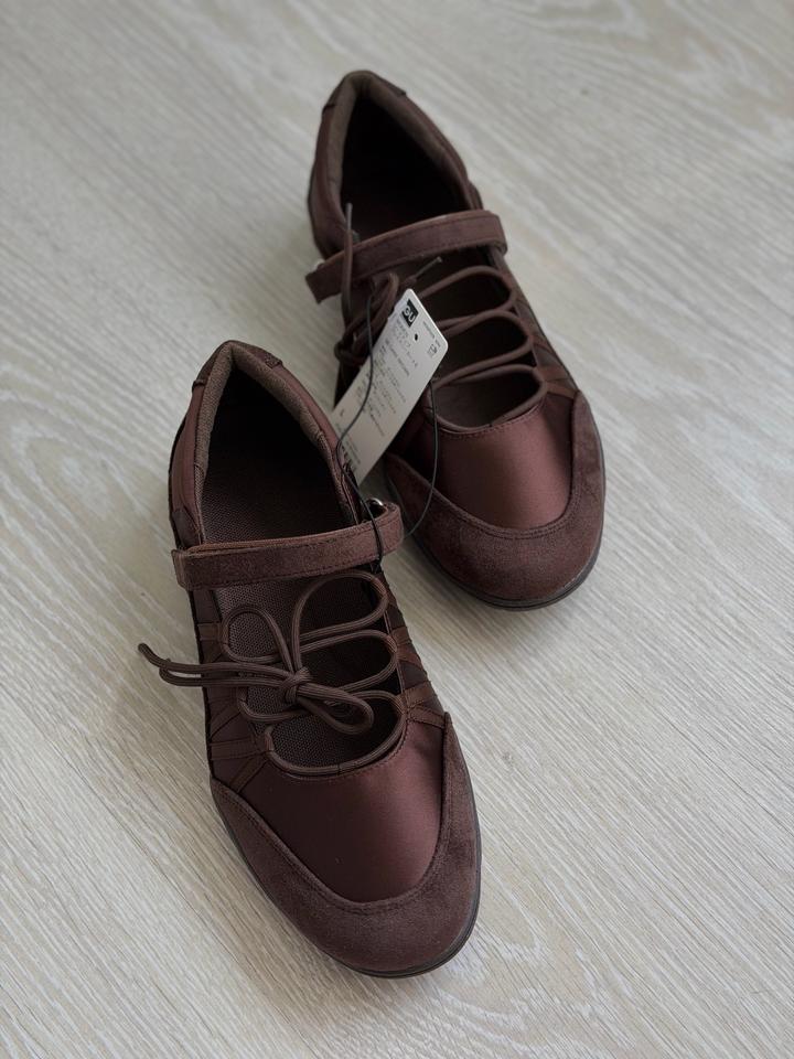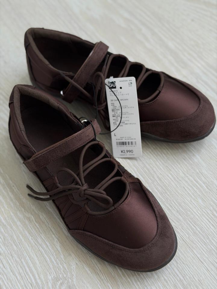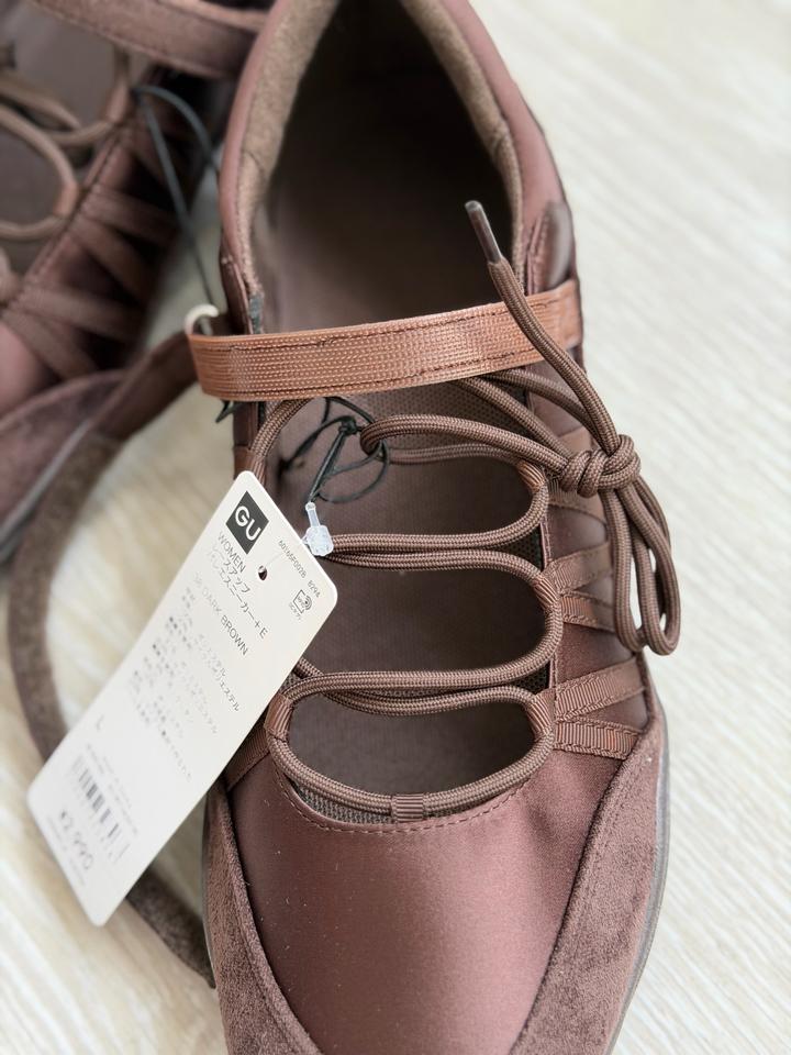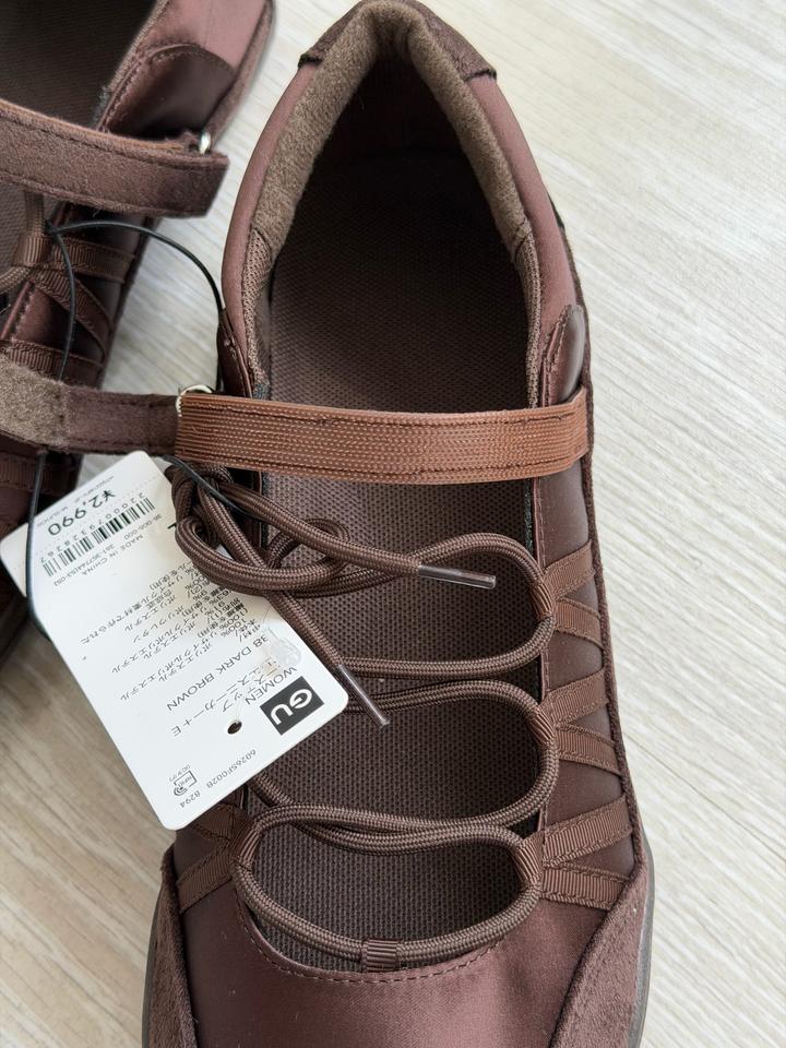 Балетки Uniqlo GU Очень удобные, стильные Можно сочетать с любым вашим образом Высота подъема регулируется благодаря завязкам На липучке Размер 38 Коричневый цвет Артикул: 597019