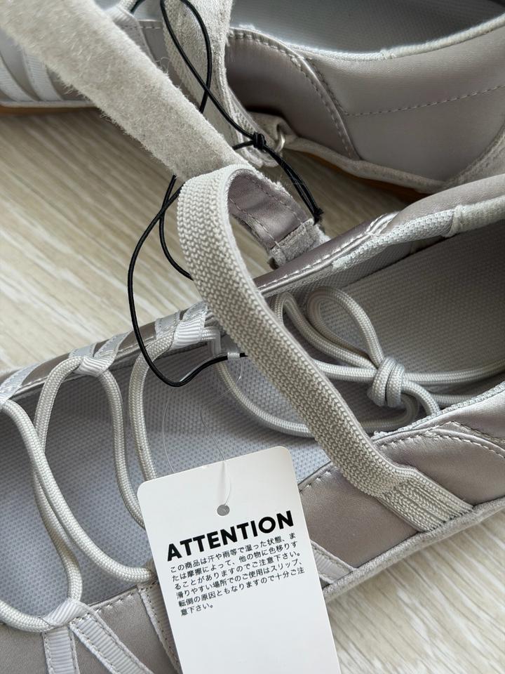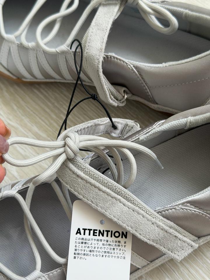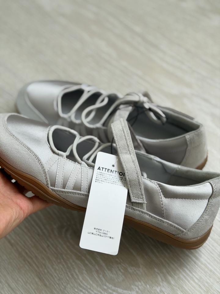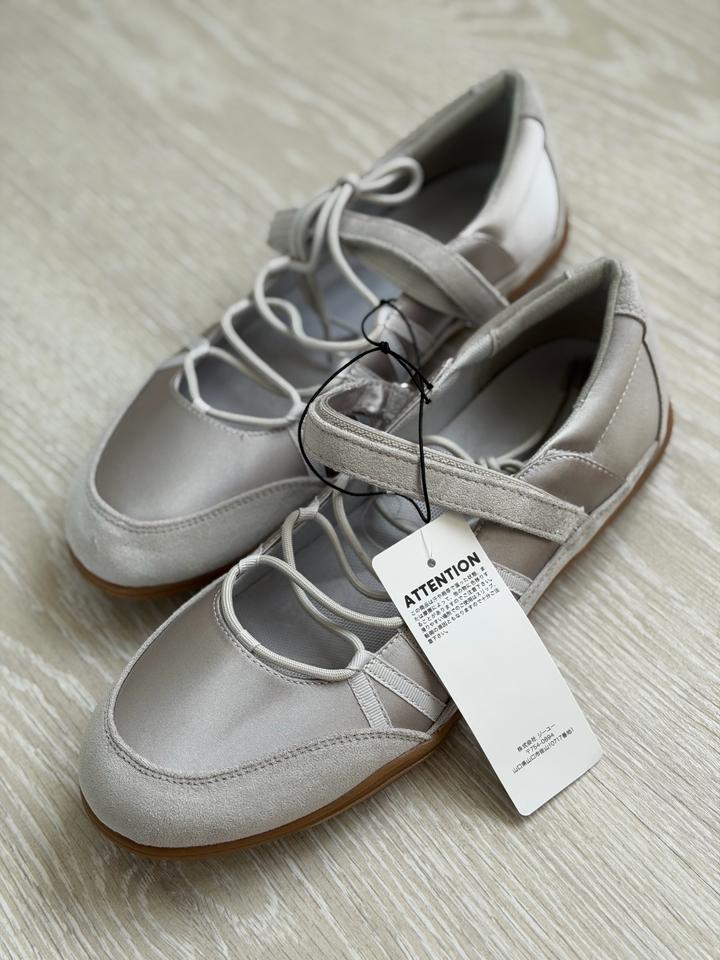 Серебристые балетки от Uniqlo GU Очень мягкие, комфортные, нигде не сдавливает Сочетается с любым образом Цвет универсальный, серый Размер 39 на 25 см стопы Для тех у кого высокий подъем ноги, можно регуливать завязками Только оригинал Артикул: 597028