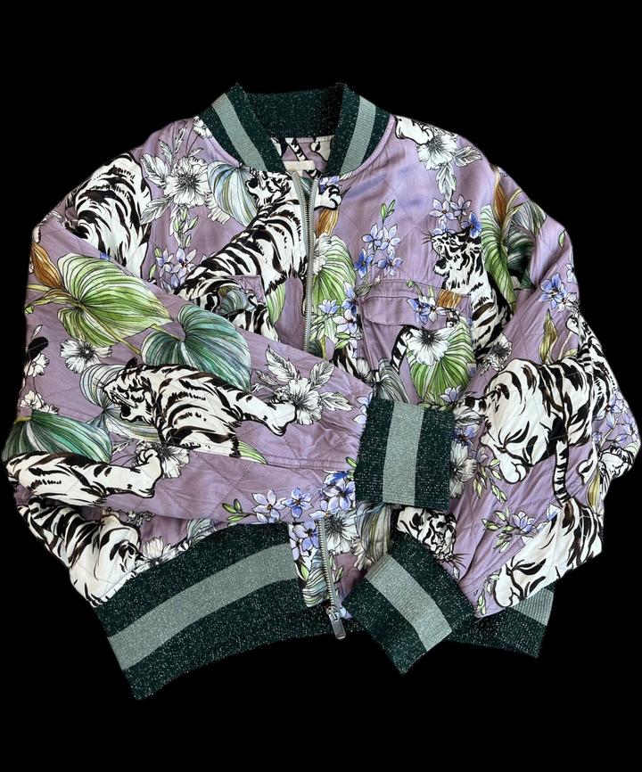Бомбер с интересным принтом, оверсайз подойдет на xs/s/m Артикул: 597060