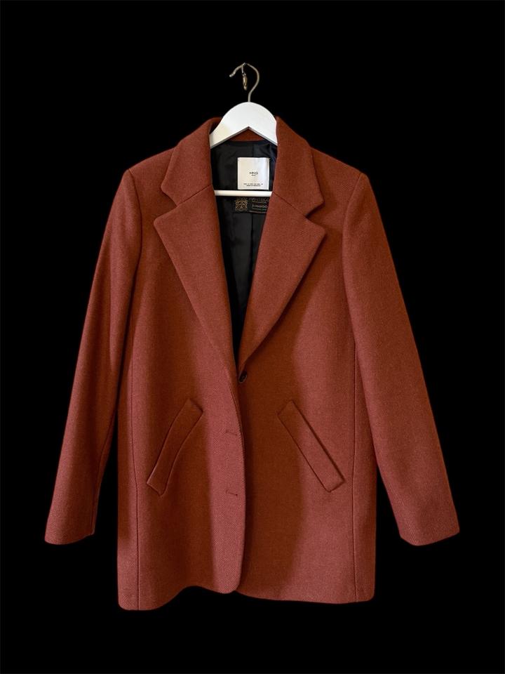 Полупальто Mango в терракотовом цвете Ткань была произведена на известной итальянской текстильной фабрике Manteco, которая специализируется на производстве дорогих шерстяных тканей, которые отличаются долговечностью, мягкостью и способностью хорошо держать форму. Состояние идеальное, без катышков и пр. фото акутальные Артикул: 597067