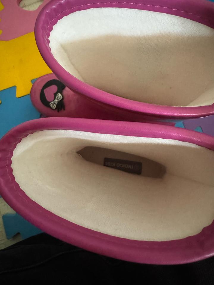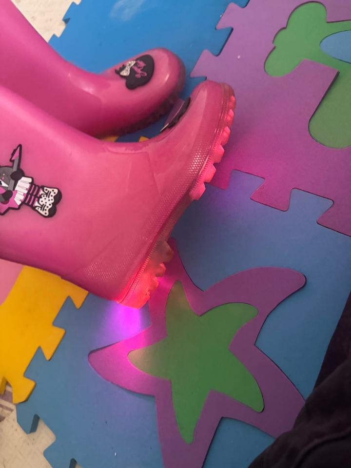 Детские резиновые сапоги от бренда Indigo Kids, которые отличаются водонепроницаемостью и стильным дизайном с декоративными элементами. Светятся когда ходит. В отличном состоянии, без дефектов. Артикул: 597118