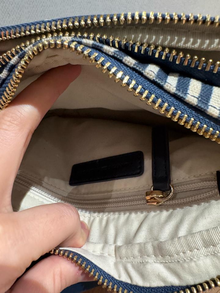 Очень легкая и удобная. Брала в прошлом году так и не носила. Дефектов никаких нет. Красивая матерчатая. С золотистыми вставками Артикул: 597123