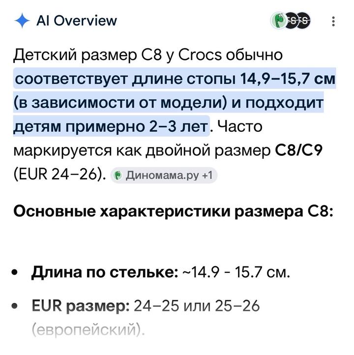 Размер С-8 Куплены в официальном магазине Детский размер C8 у Crocs обычно соответствует длине стопы 14,9–15,7 см (в зависимости от модели) и подходит детям примерно 2–3 лет Артикул: 597196