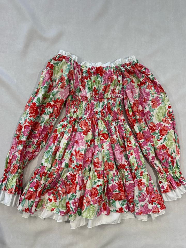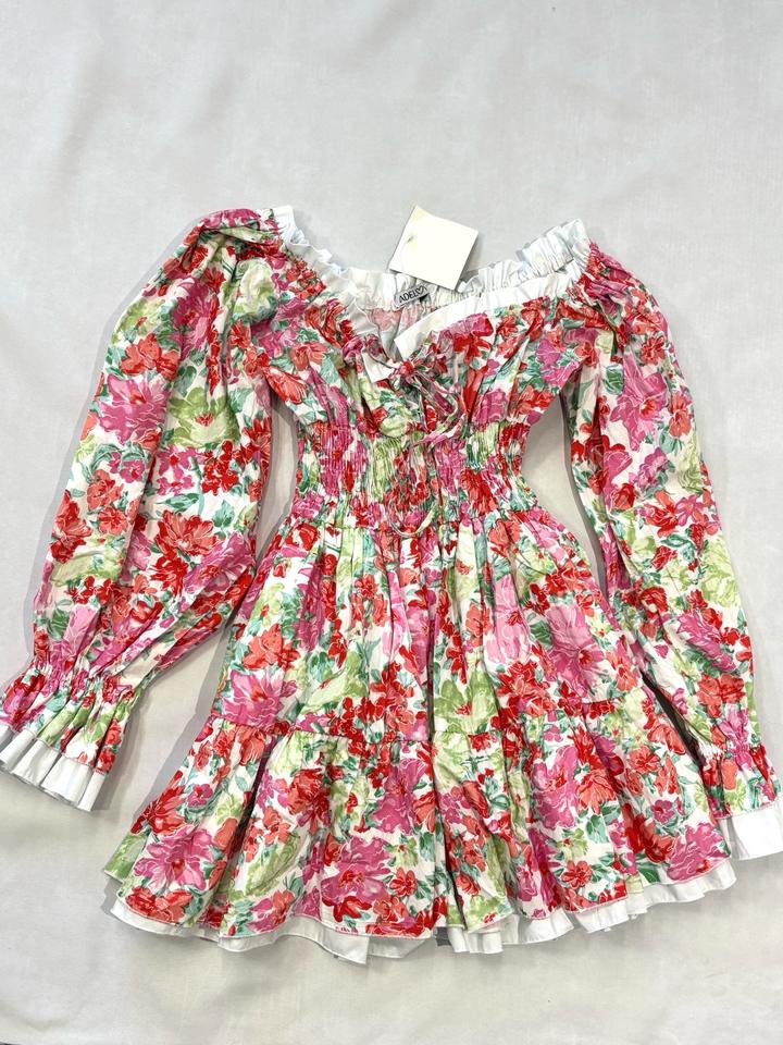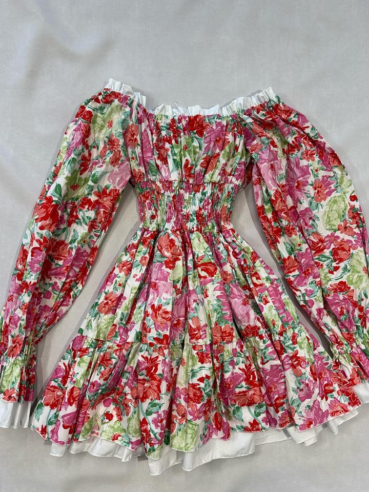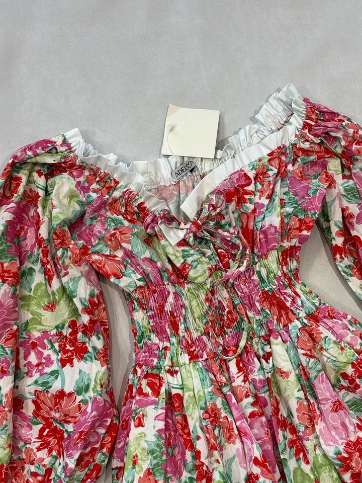 Летнее платье с цветочным принтом, спереди завязывается на ленточку, зауженная у талии Состояние хорошее Артикул: 597282