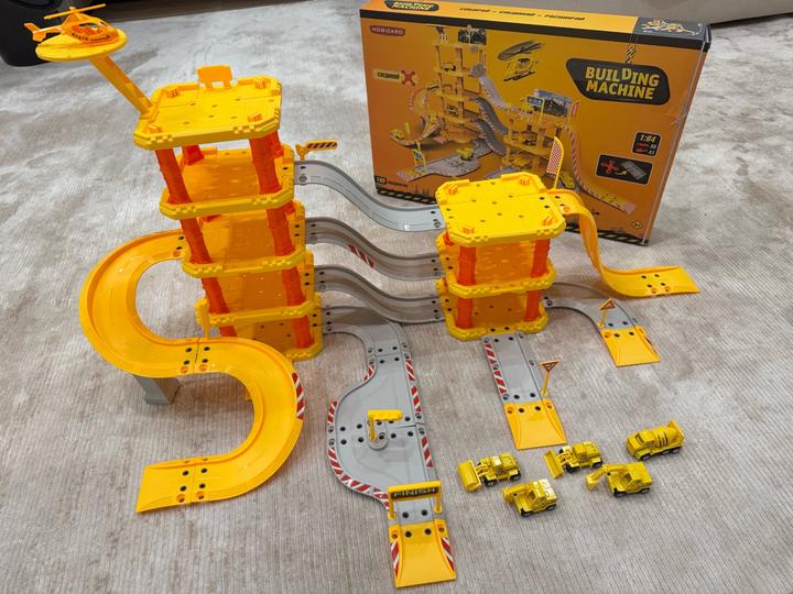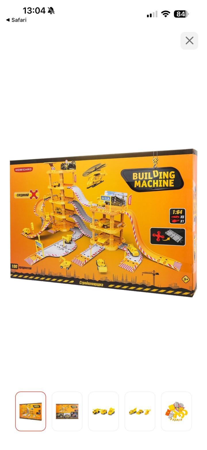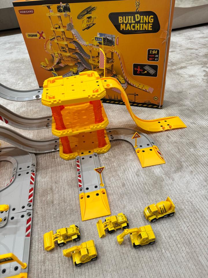 Похожие наборы Mobicaro стоят от 20 тысяч. В комплекте 5 машинок 1 вертолет Наклейки потерялись. Размер парковки в собранном виде (Д×Ш×В) -90×50×44см Артикул: 597349