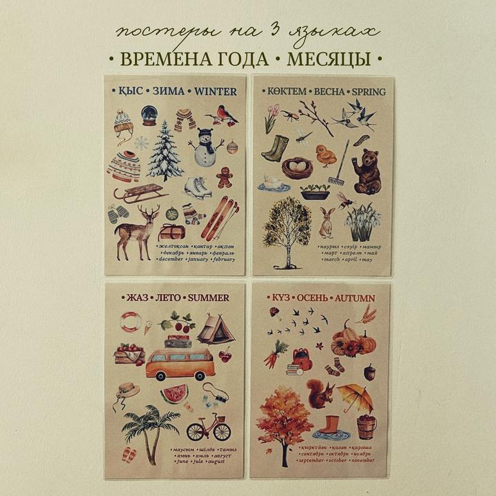 • 4 постера с ламинацией на 3 языках; • в подарок магниты самоклеящиеся, можно закреплять постеры на магнитную доску или холодильник; • размер а4, яркие акварельные картинки; • сделано с теплом и душой 🌿🪿 Артикул: 597357