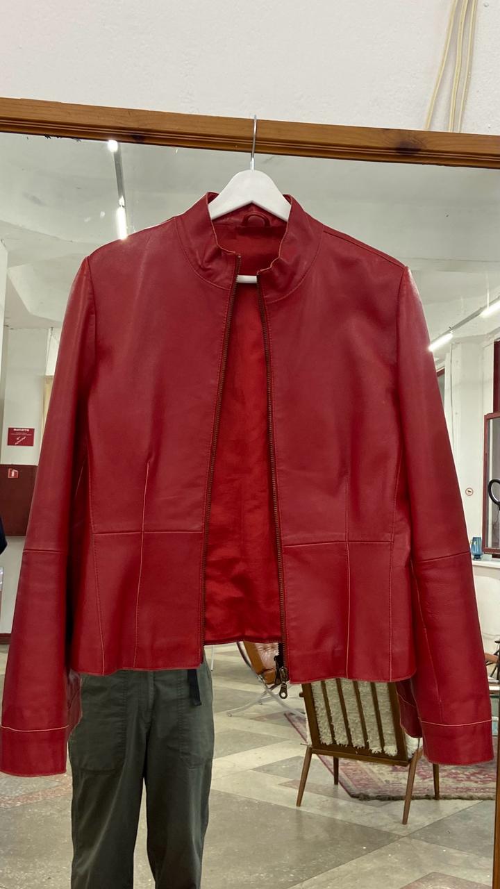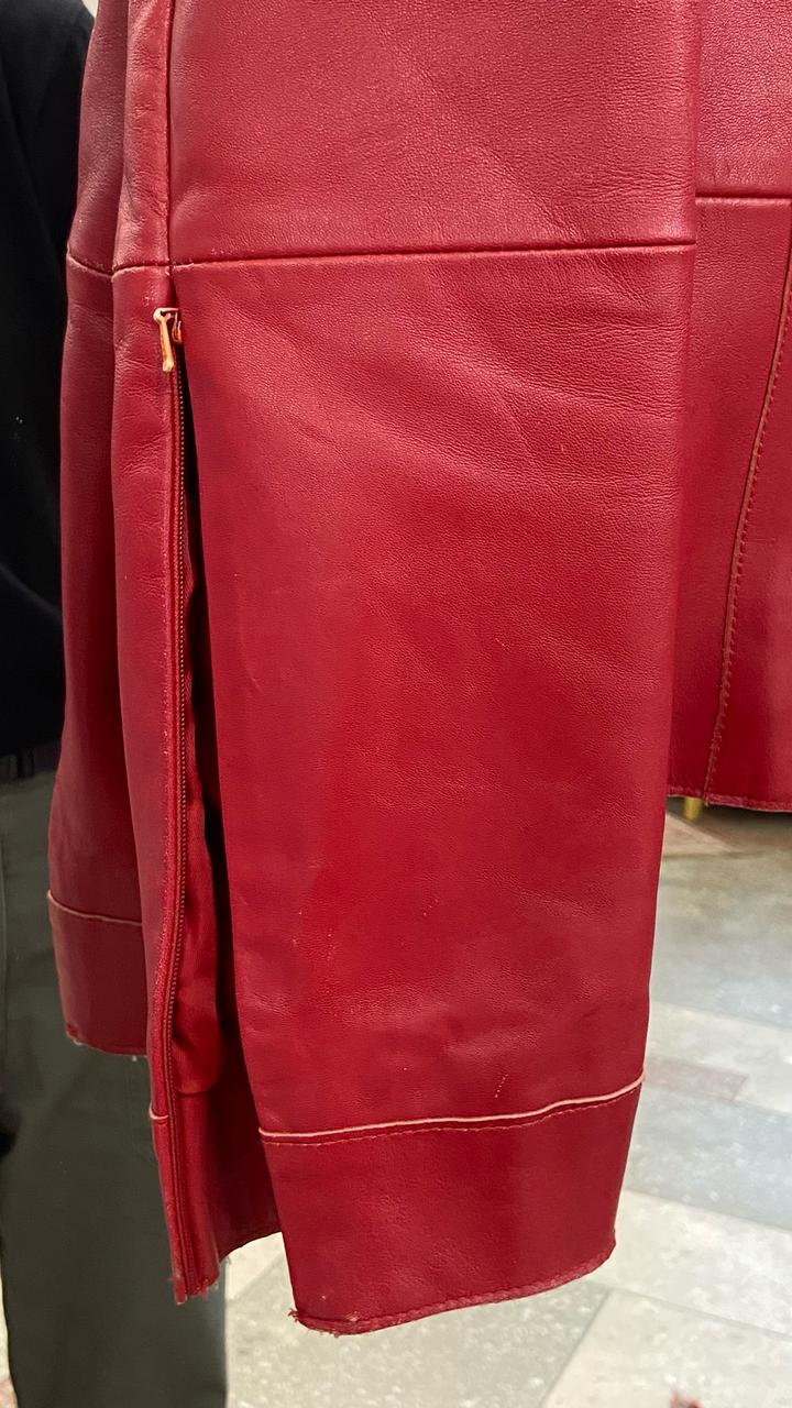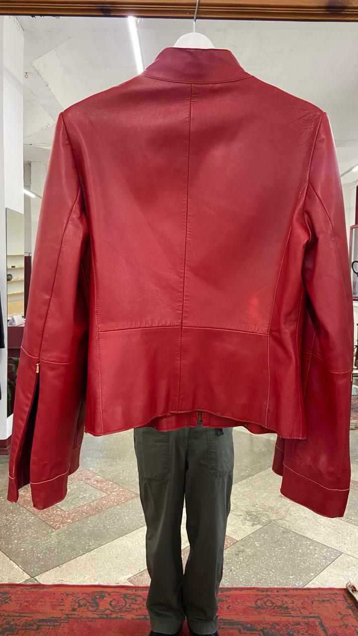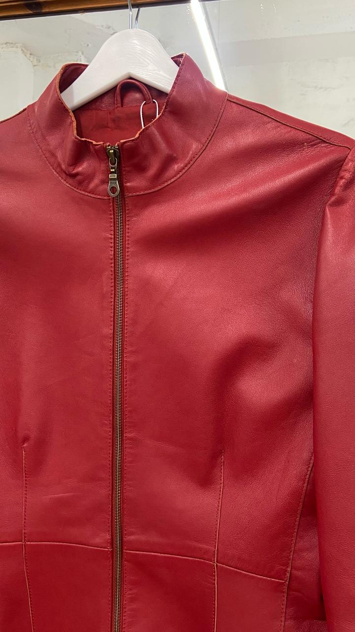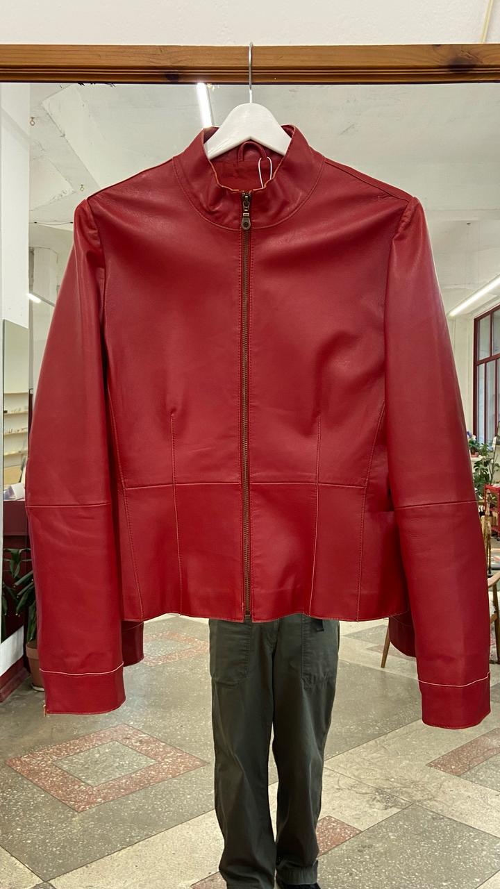 Бренд: Stefanel (оригинал)Материал: 100% натуральная кожа (Real Leather / Vera Pelle). Кожа мягкая, приятная на ощупь, но хорошо держит форму.Подкладка: 100% полиэстер в цвет изделия.Размер: M (идет размер в размер).Крой: Приталенный силуэт, воротник-стойка. На рукавах есть функциональные молнии, которые позволяют менять стиль и посадку.Куртка в хорошем состоянии, носилась аккуратно.Важный нюанс: На спинке справа есть небольшое пятнышко/потертость (видно на фото) и едва заметная тонкая линия Артикул: 597394
