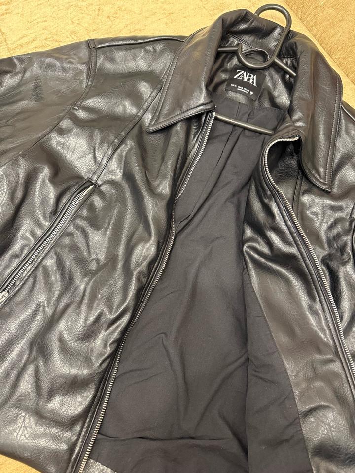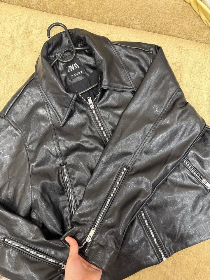 Zara Кожаная куртка Рр XL Покупала за 35.000, продаю за 14.000🫶🏻 Носила всего 1–2 раза, состояние отличное Артикул: 597487