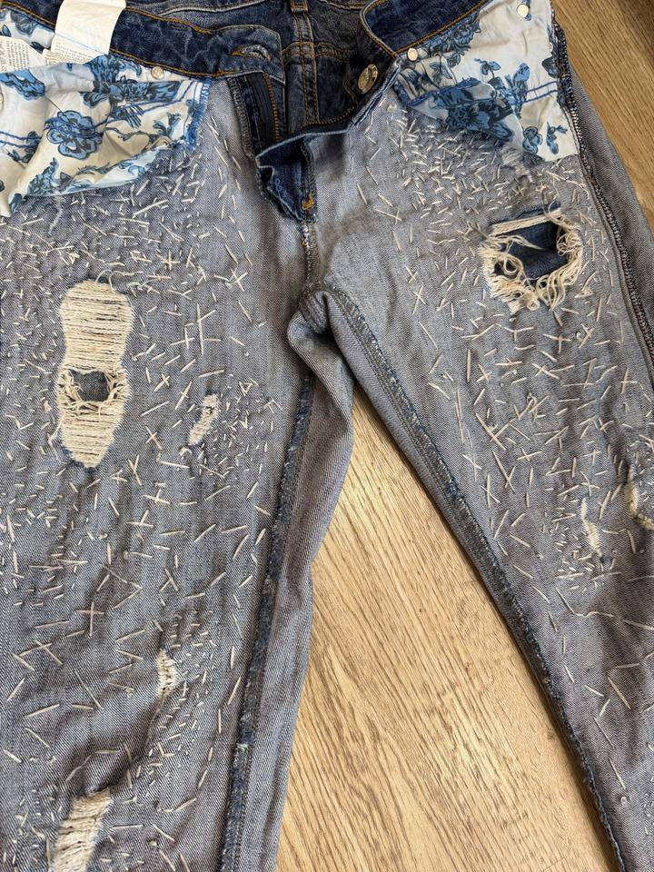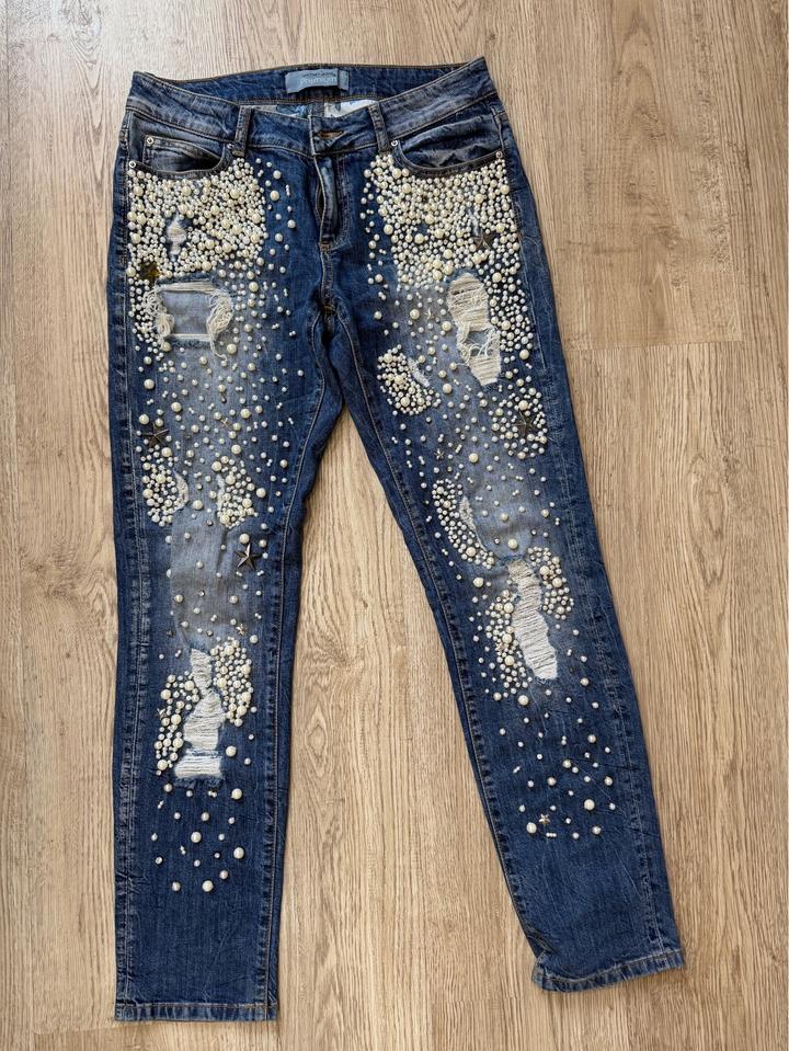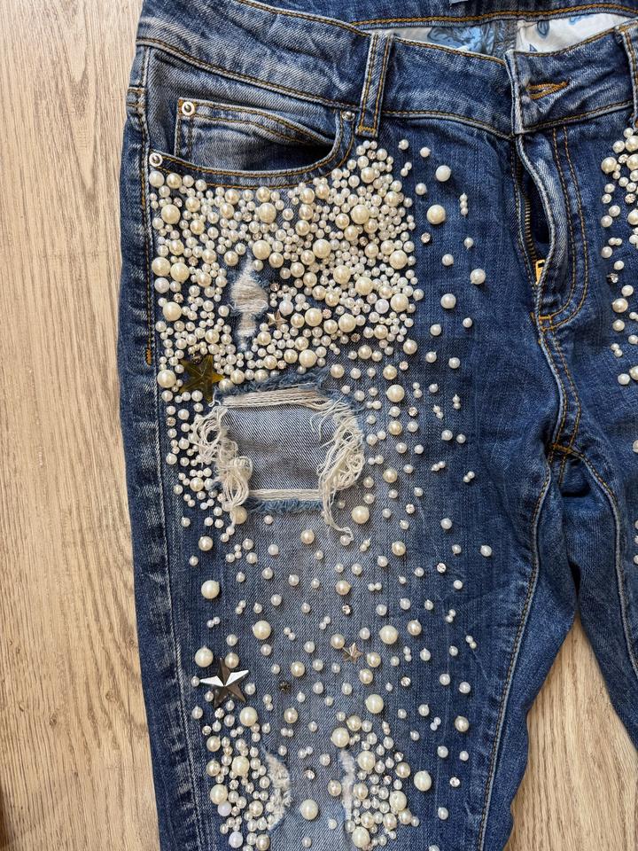 Джинсы Турецкие прошитые в бусинах. Прикрепила все возможные фотографии. Размер указываю 44 , на 46 они будут тесноваты. Артикул: 597520