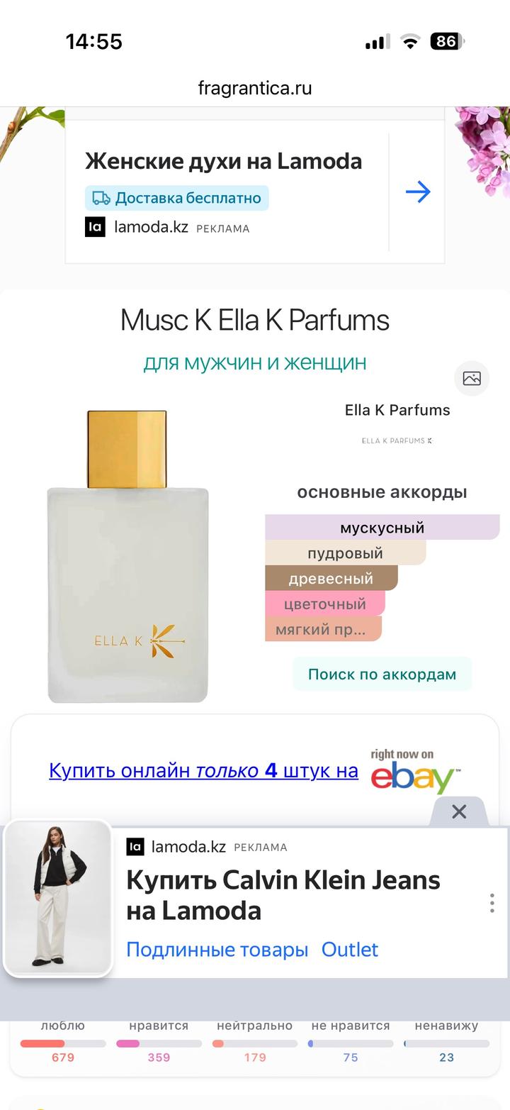 Musc K Ella K Parfums — это аромат для мужчин и женщин, он принадлежит к группе древесные цветочные мускусные. Musc K выпущен в 2023 году. Парфюмер: Sonia Constant. Верхние ноты: Песчаная лилия и Розовый перец; средние ноты: Кедр и Корень ириса; базовые ноты: Мускус и Ветивер. Артикул: 597529
