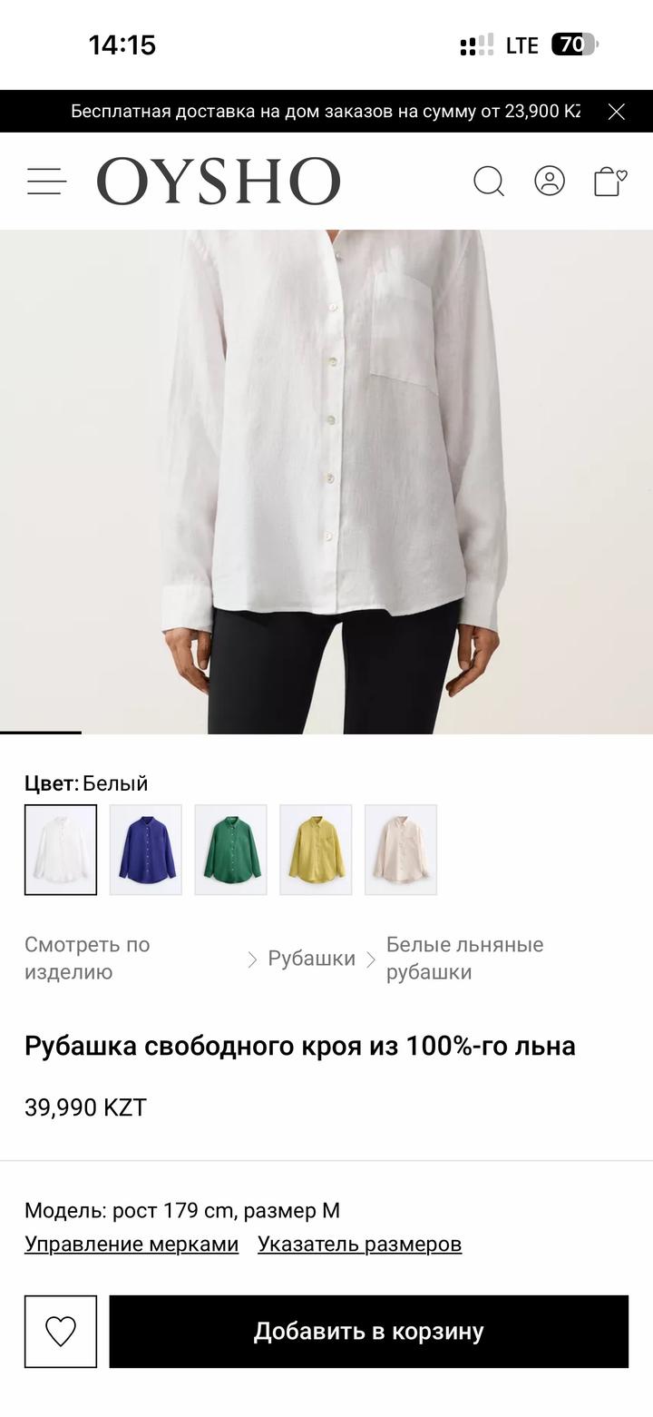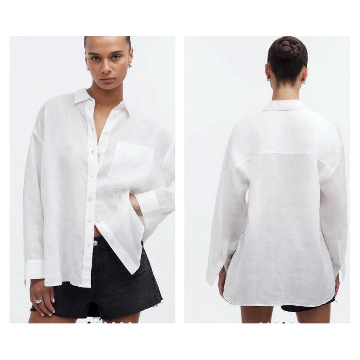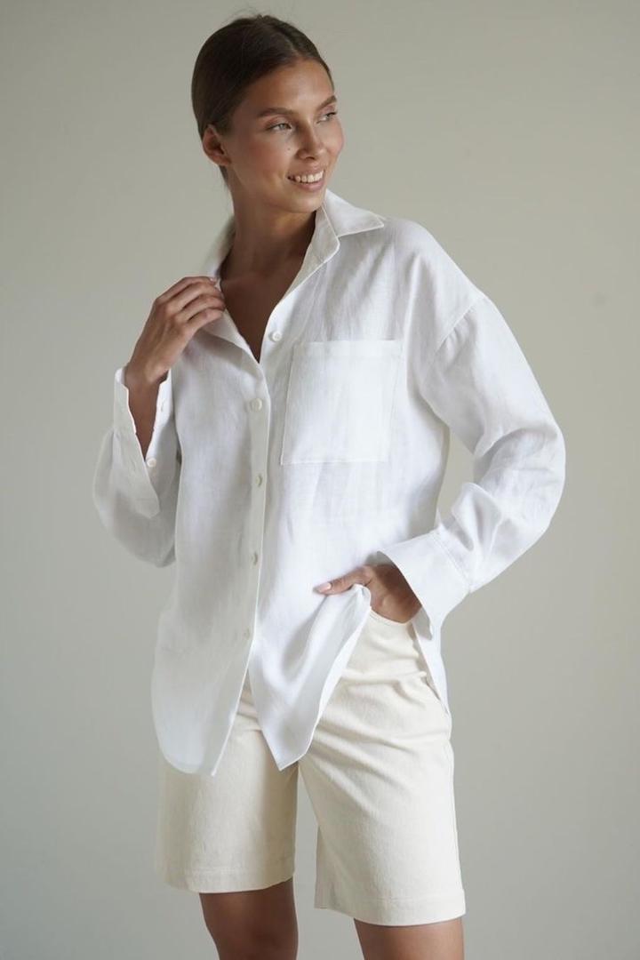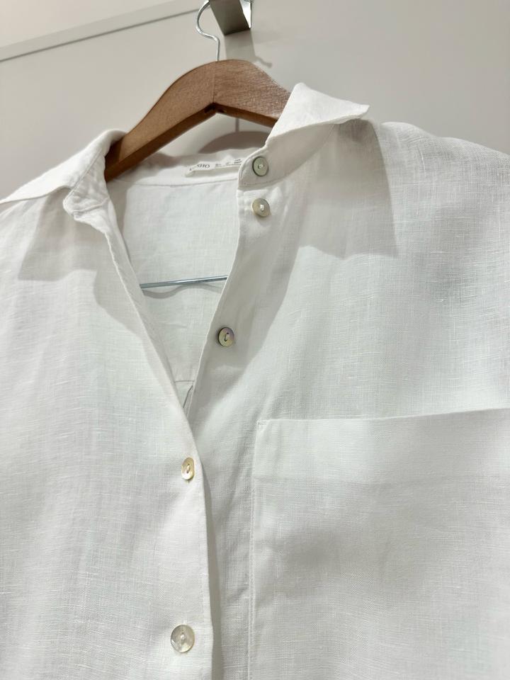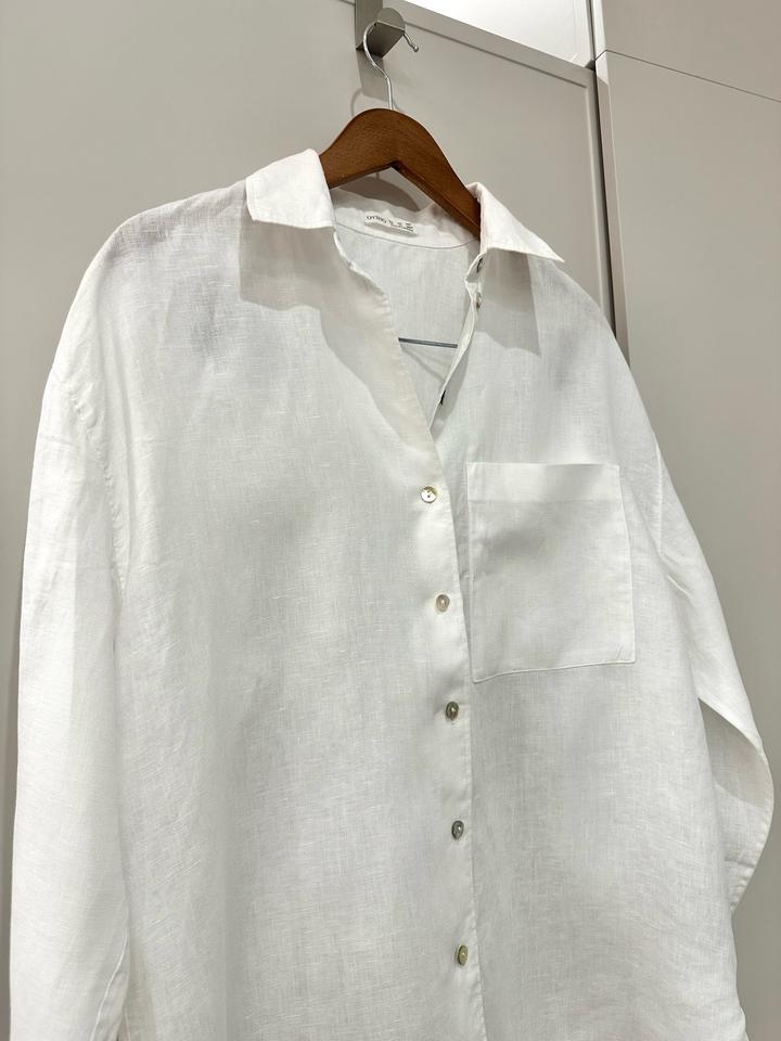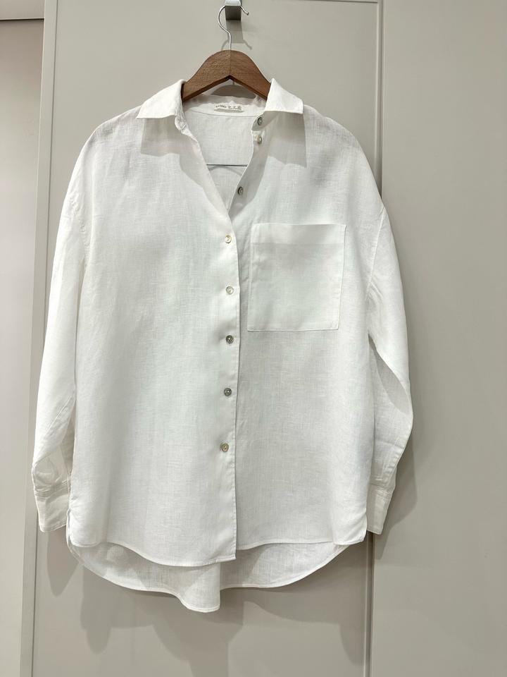 Белоснежная рубашка из 100% льна от OYSHO Легко комфортно удобно Модель оверсайз подойдет на S-M В идеальном состоянии,была одета 1 раз на отдых,без дефектов Есть также белые стильные шорты к этой рубашке,можно собрать летний комплект Артикул: 597534