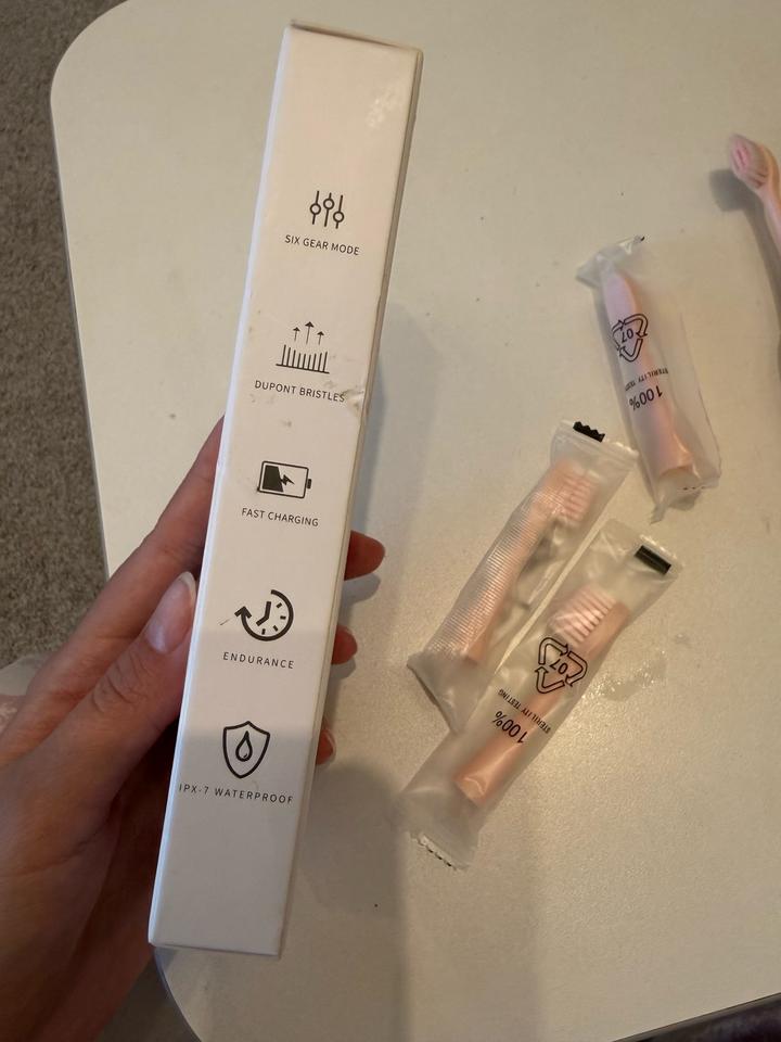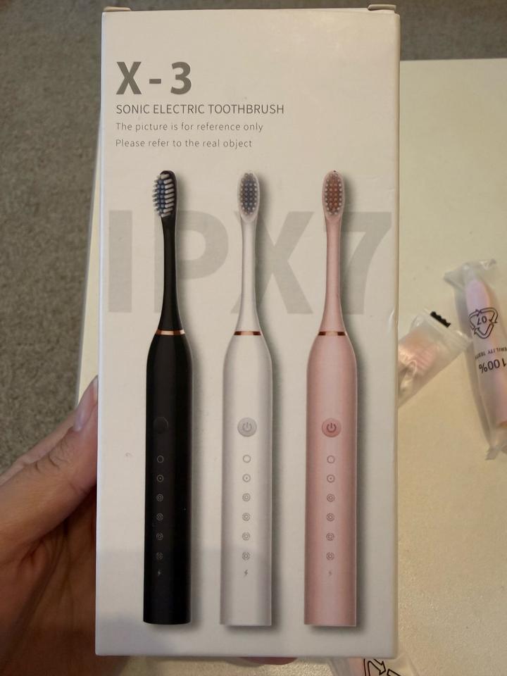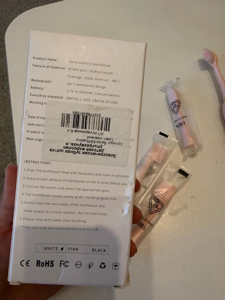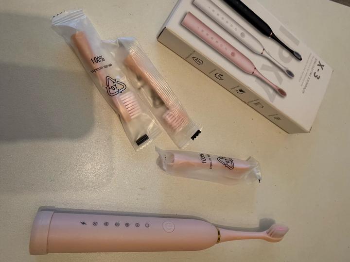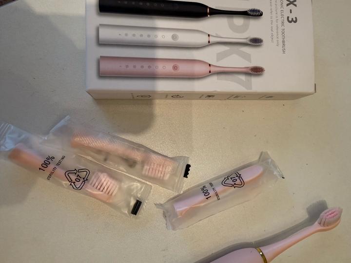 Новая электрическая ультразвуковая зубная щетка розового цвета, 3 запаски, зарядка в комплекте Артикул: 597561
