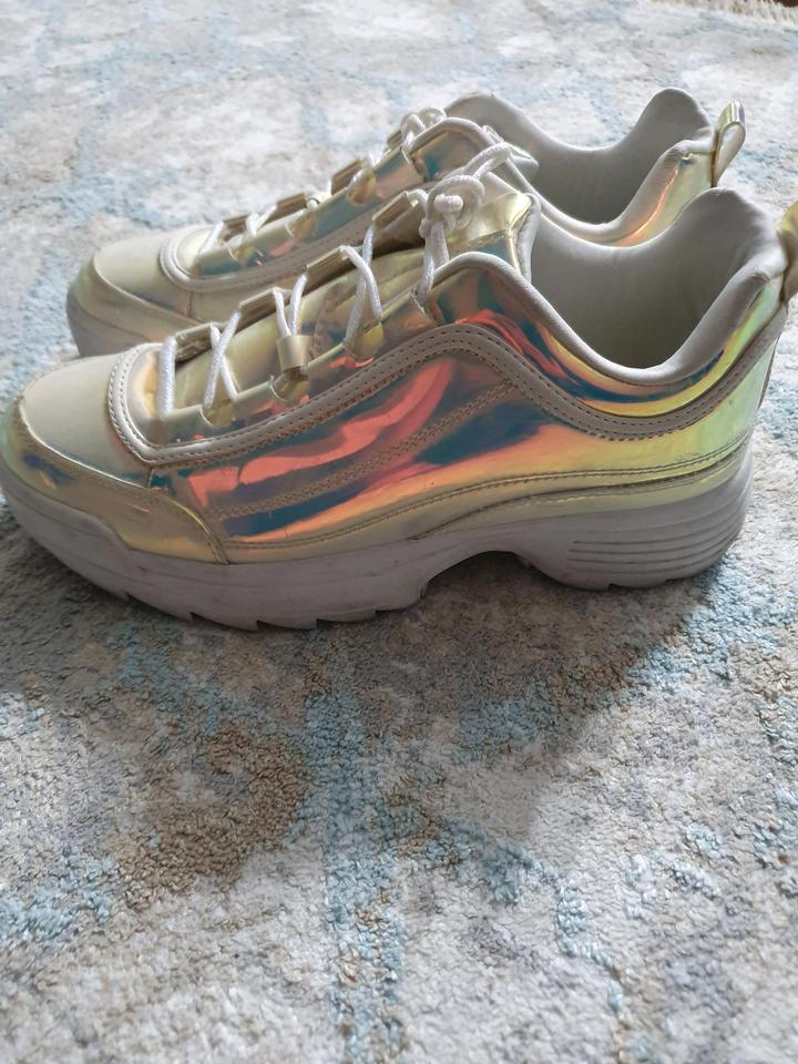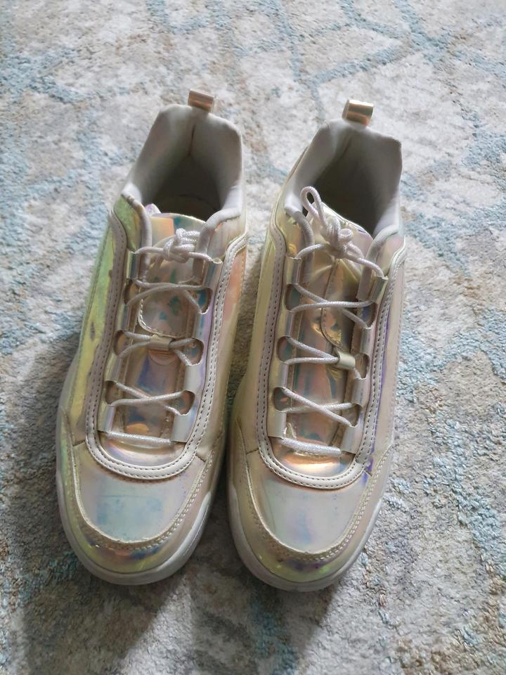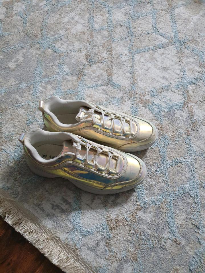 Стильді әрі жарқын голографиялық кроссовкалар. Ерекше және сәнді образ жасауға тамаша таңдау. 📏 Өлшемі: ___ 🌈 Түсі: күміс түсті голографиялық ✔️ Жағдайы: өте жақсы Массивті табаны өте ыңғайлы, күнделікті киюге қолайлы. Сәнді әрі заманауи стильді ұнататындарға арналған. Артикул: 597583