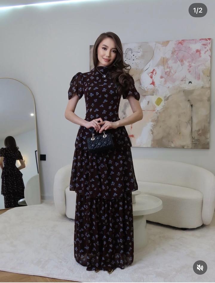 Коричневое платье с цветочным принтомM