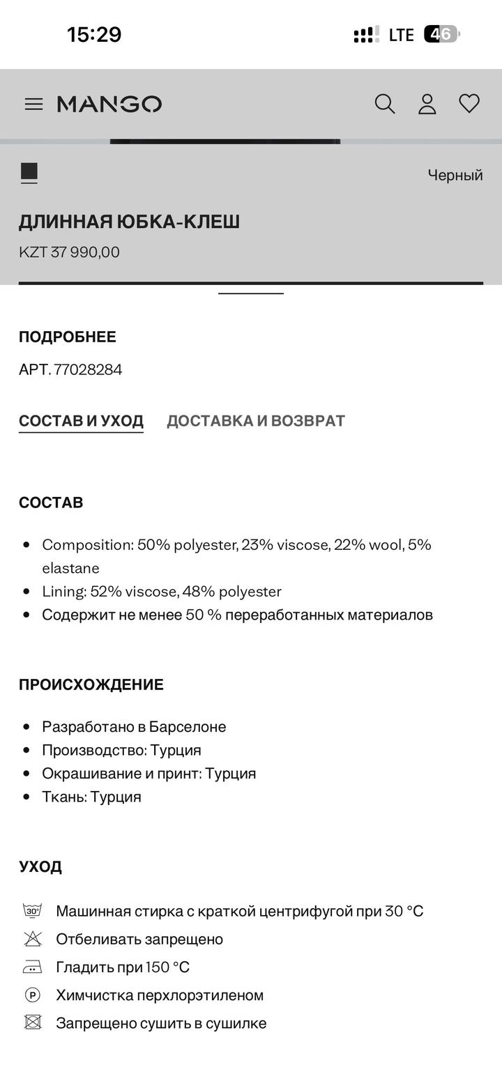 Юбка Mango из качественной костюмной ткани с добавлением шерсти (по качеству как Mango Selection) А-силует,который подойдет для большинства типов фигур Есть боковые карманы Отлично смотрится с каблуками и на плоском ходу Размер 36 S (большемерит и подойдет на размеры М) В отличном состоянии,без дефектов Артикул: 597614